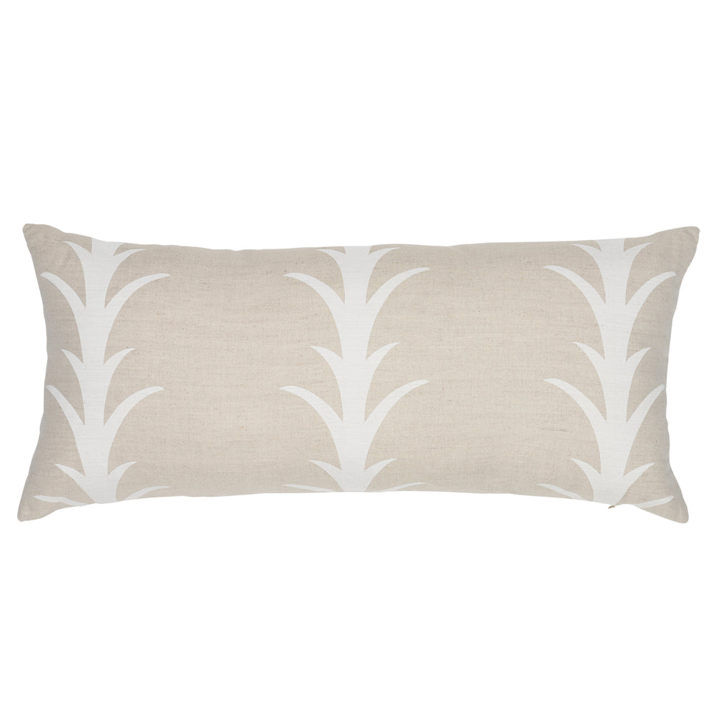 This pillow features Acanthus Stripe by Celerie Kemble for Schumacher with a knife edge finish. This pattern is a stylized stripe based on a classic acanthus motif. Elegant and airy, Acanthus Stripe in natural is also incredibly easy to use. Pillow includes a feather/down fill insert and hidden zipper closure. -