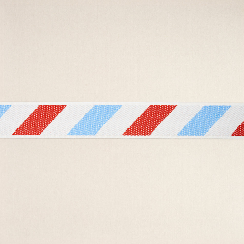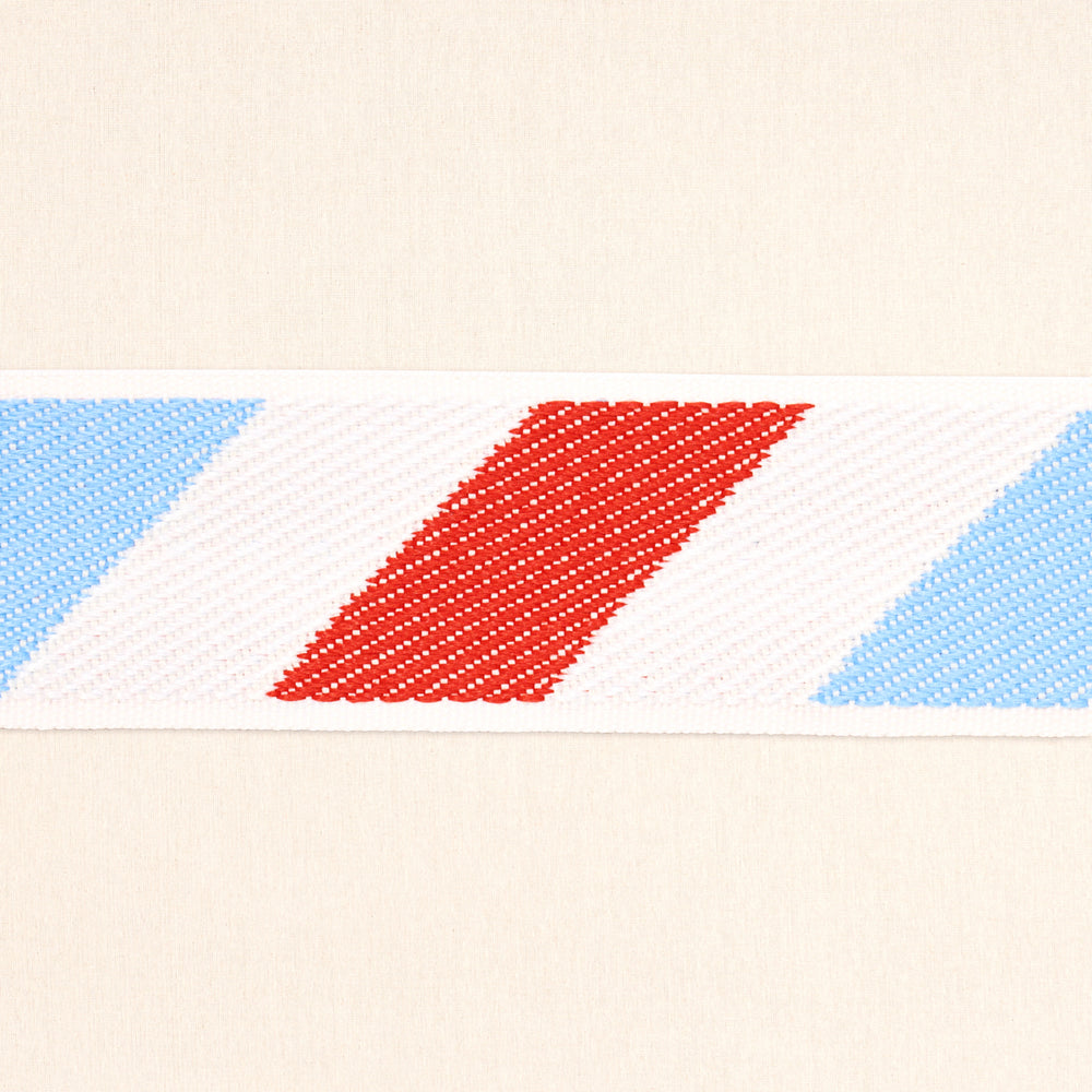 A familiar motif with a fun twist, AirMail Indoor/Outdoor Tape in red-and-blue is a versatile two-inch-wide trim by Mary McDonald. The tight high-performance weave resists stains, moisture, mildew and fading. This stylish diagonal stripe delivers a touch of chic to upholstery, pillows or windows, indoors or out. Also available in three-inch width. -