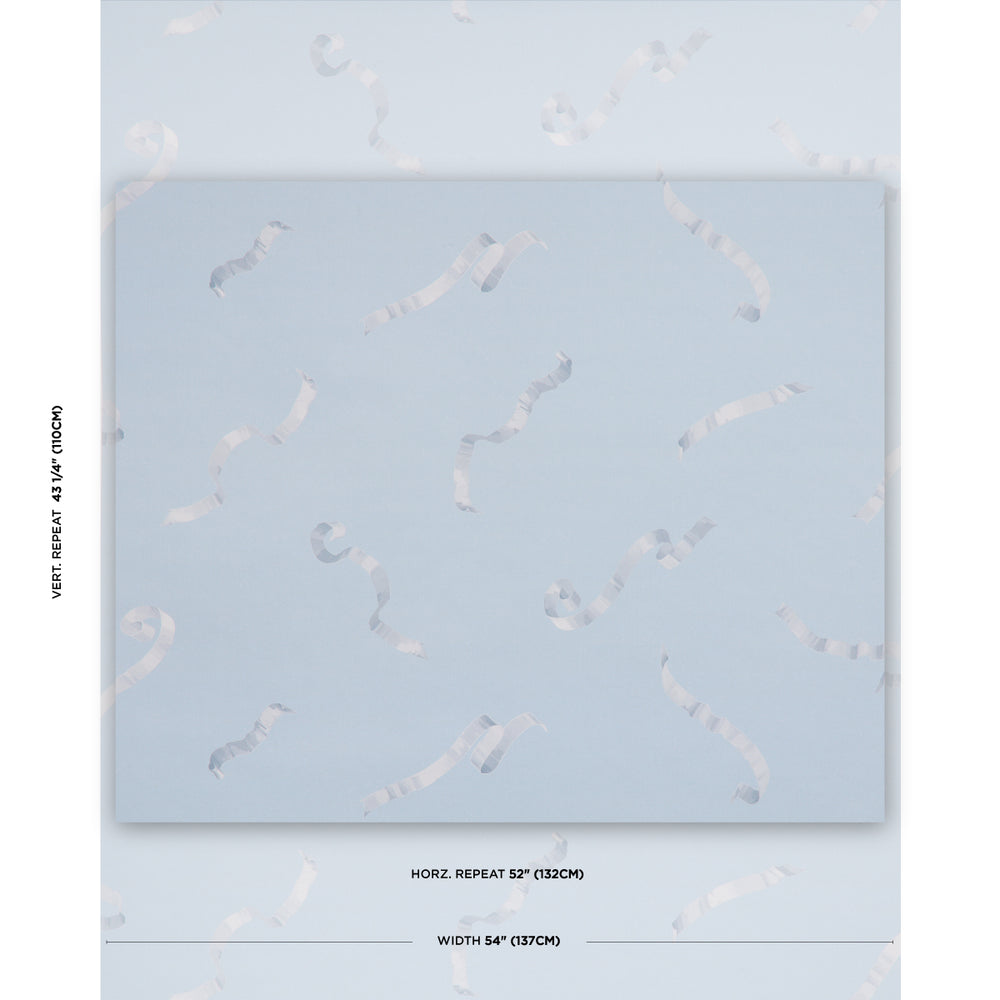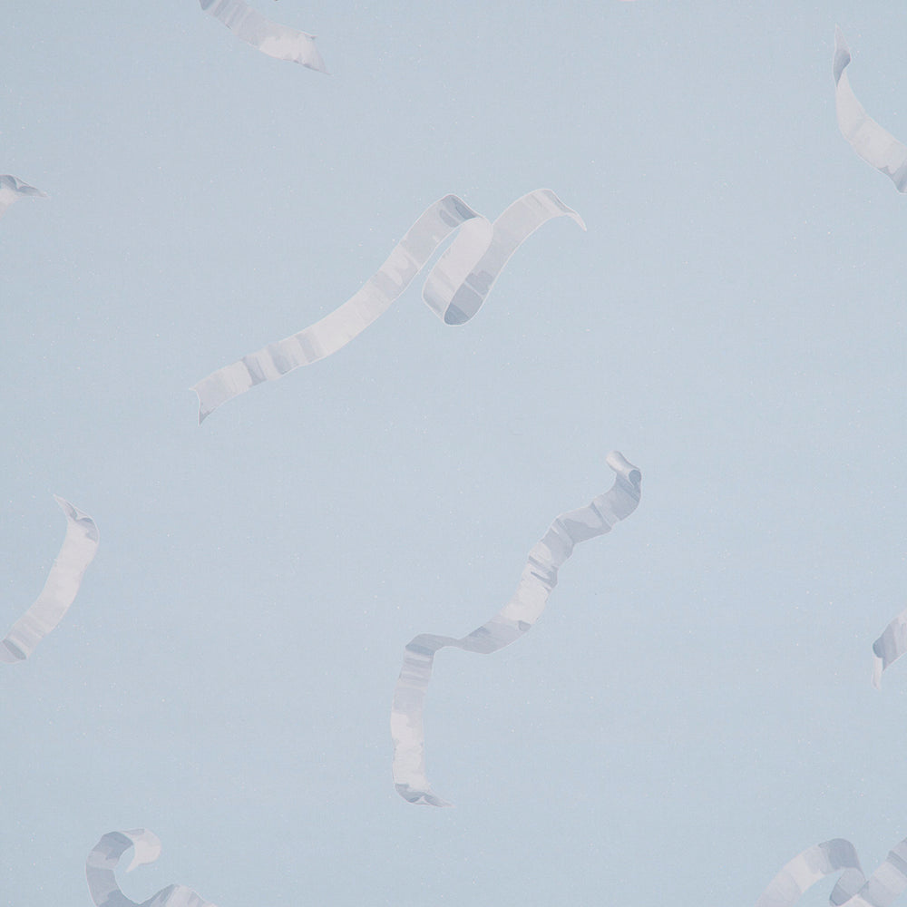 Based on original hand-drawn artwork, Beth wallpaper in blue by Charlap Hyman & Herrero with Pilar Almon features beautiful scrolling trompe l’oeil ribbons printed on a fibrous ground. Whether it is used on walls or the ceiling, this ethereal large-scale design adds dimension, drama and a dash of the unexpected to any room. -