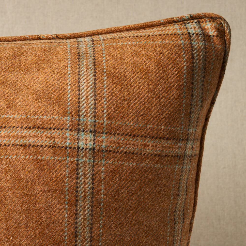 This pillow features Blackburn Merino Wool with a self welt finish. Blackburn Merino Plaid in camel is a traditional twill weave made of superfine lambswool yarns that are mélange spun for a wonderful heathered effect. Pillow includes a feather/down fill insert and hidden zipper closure. -
