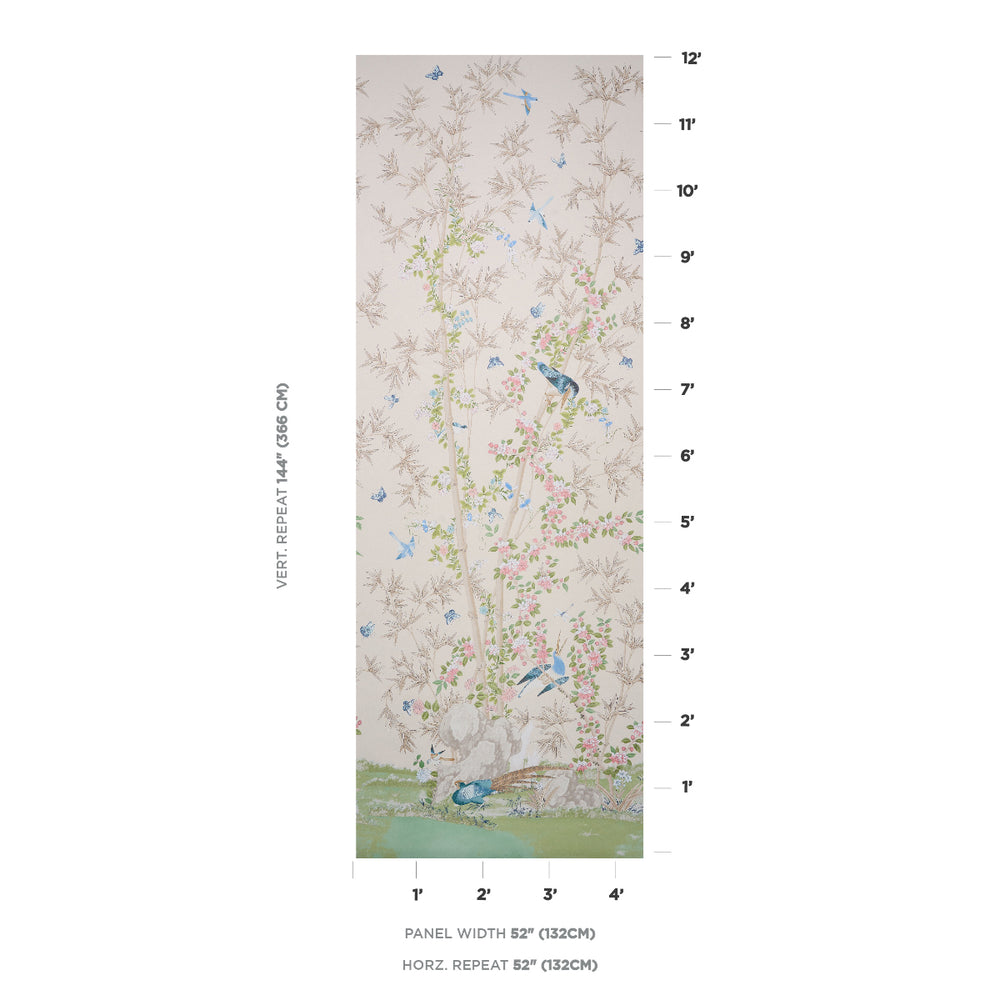 Based on a rare 18th-century document and created by one of Europe’s premier engravers, Brighton Pavilion Panel in alabaster is a Miles Redd design that comes in panels of wallpaper with a 12-foot repeat. Also available as a fabric.