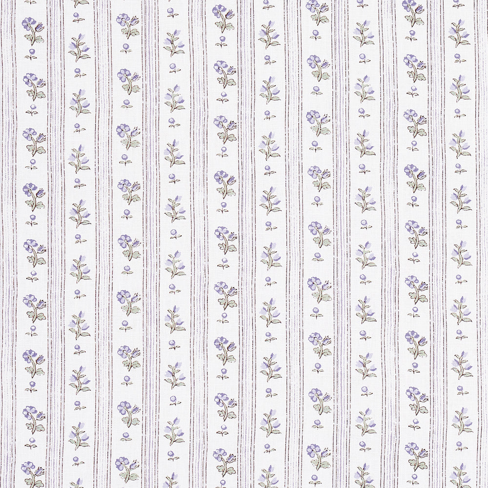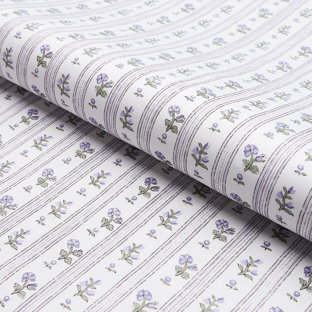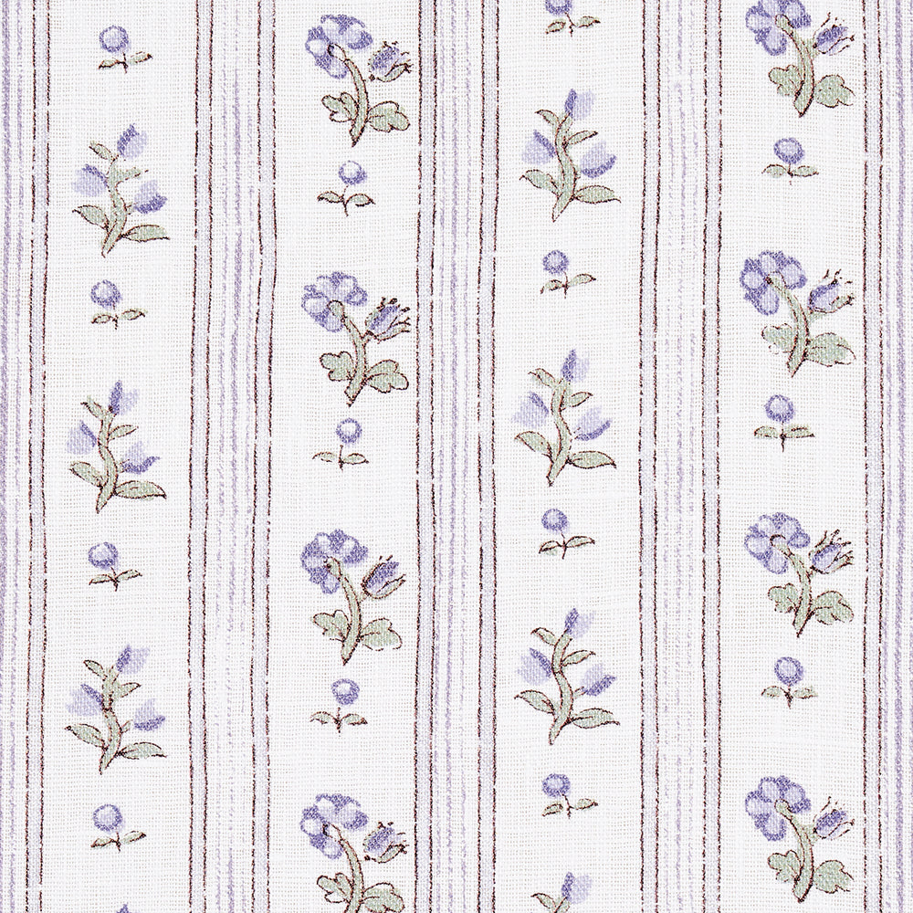A classic combination of flowers and stripes, this delicate small-scale design has a lovely handprinted look. Cabanon Stripe fabric in violet is wonderfully charming and easy to use. It plays well with other patterns and works beautifully for light upholstery, window treatments and pillows. -