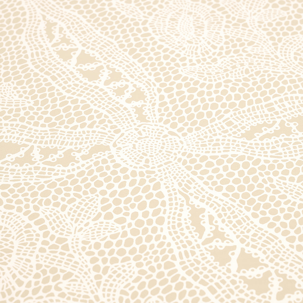 Inspired by traditional openwork, Cosette Lace in sand is an intricate floral lattice design silhouetted on a solid ground. Graphic yet delicate, this unique mid-scale wallpaper works beautifully with other patterns, whether it wraps an entire room or accentuates a single focal wall. -