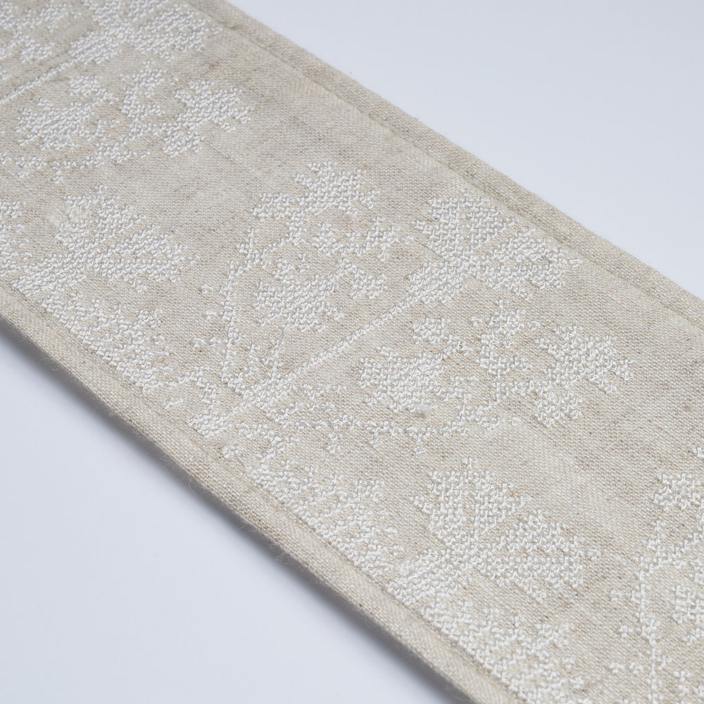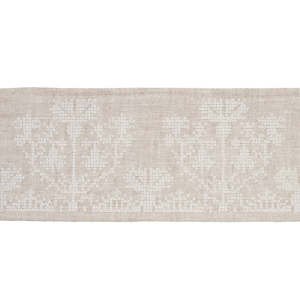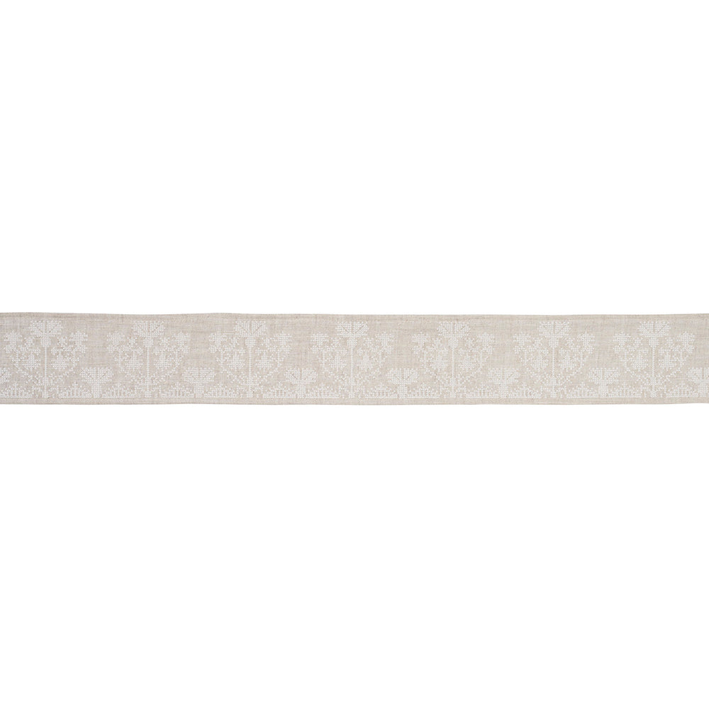 Inspired by an 18th-century trim, Custis Embroidered Tape in shell features wonderful stylized carnations stitched on a linen ground. The delicate pattern on this 3.5-inch-wide tape captures the artistry and charm of the original cross-stitched design. This trim adds polish and a lovely finishing touch to window treatments, upholstery and pillows. © 2022 The Colonial Williamsburg Foundation. WILLIAMSBURG is a trademark of The Colonial Williamsburg Foundation. -