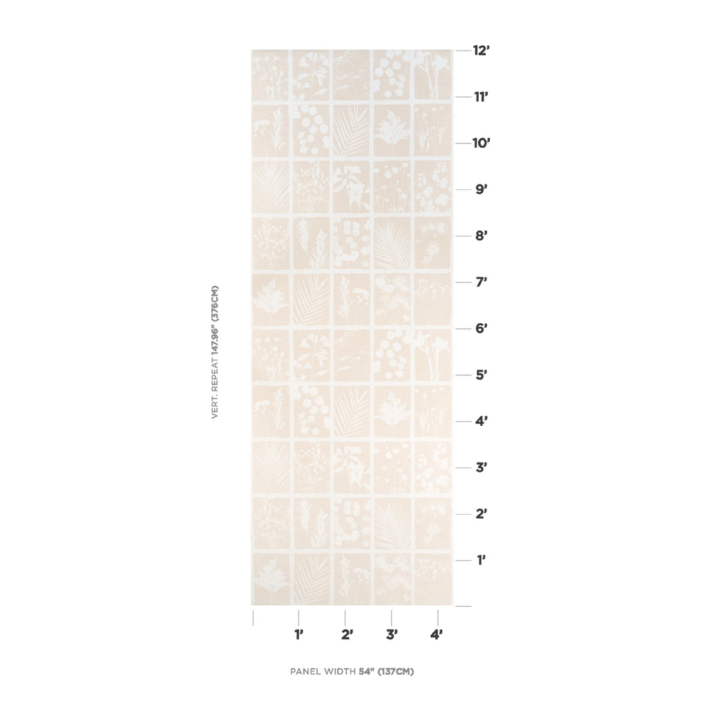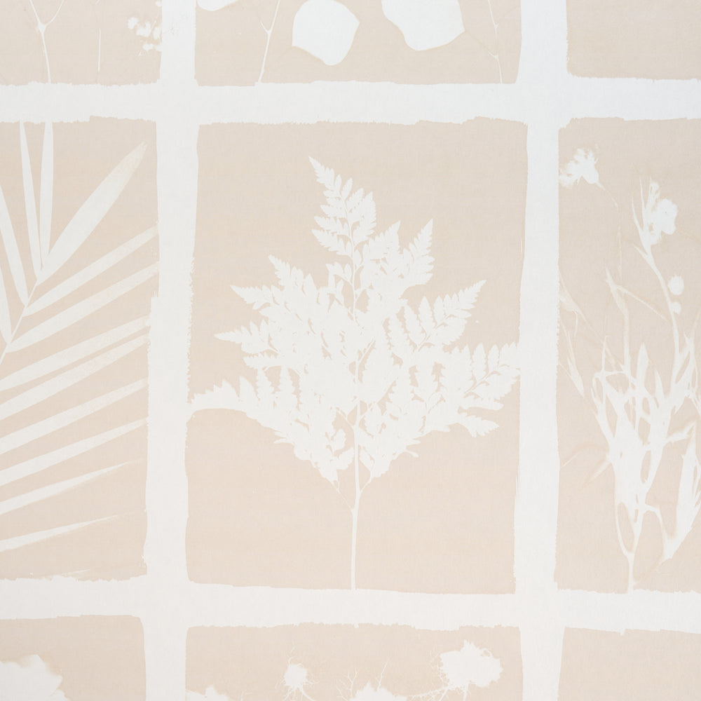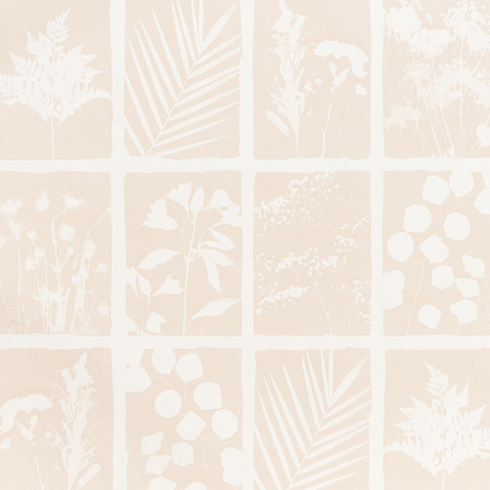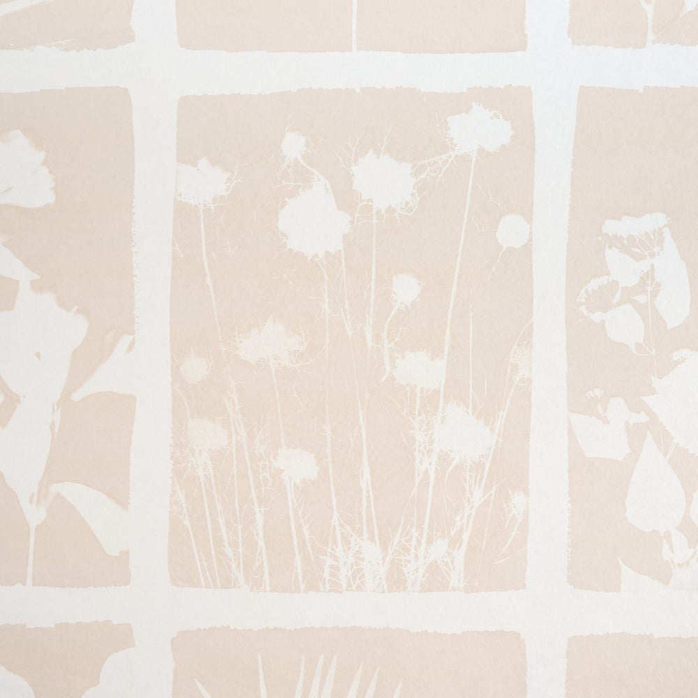 A wonderful homage to the long tradition of botanical contact prints, Cyanotype Panel in natural features some 20 individual plant silhouettes artfully arranged in a perfectly imperfect grid pattern. Images of flowers, leaves, ferns and palm fronds appear within this panel design's large repeat, creating a magical, memorable and stylish effect. -