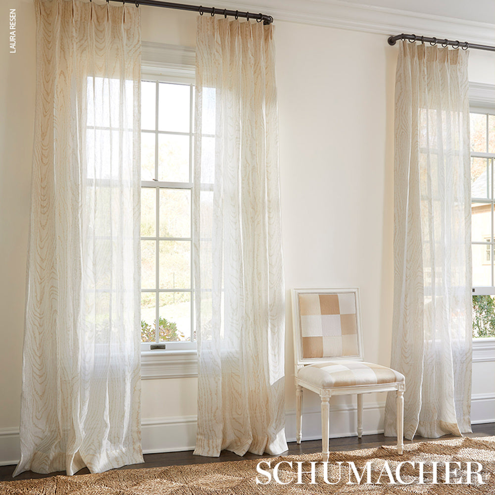 This stylish wide-width sheer in sand puts a new spin on a classic motif, oomphed up with shimmery metallic threads. Subtle variations are part of its inherent natural beauty. Also available in regular width. -
