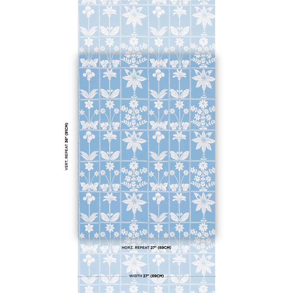 Inspired by a midcentury pattern in our archive, Georgia Wildflowers in blue is a stylized silhouette design with endless charm. This appealing mid-scale botanical wallpaper, with its delicate grid of flowers, has a wonderful graphic simplicity and an artisanal hand-printed look. Also available as a fabric. -