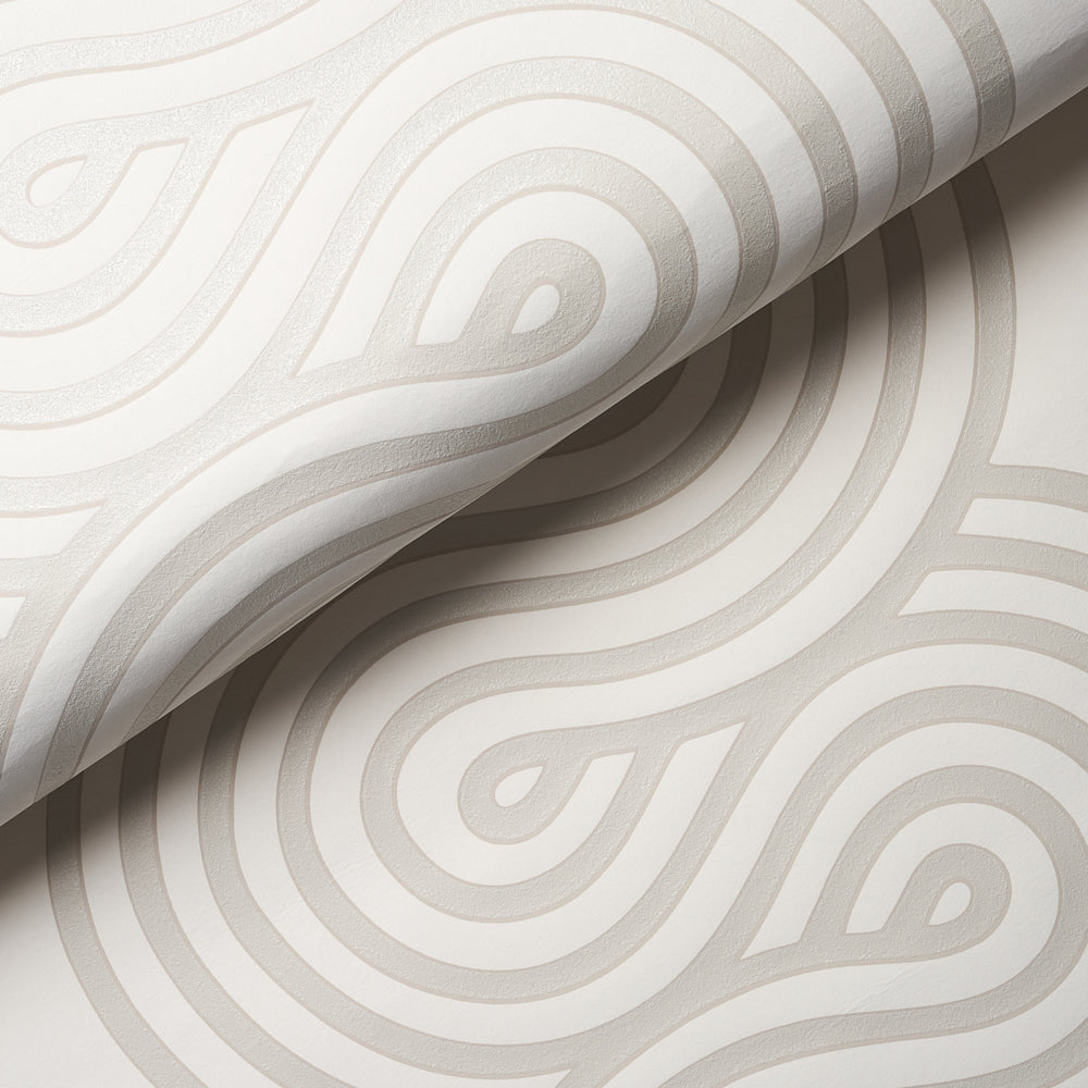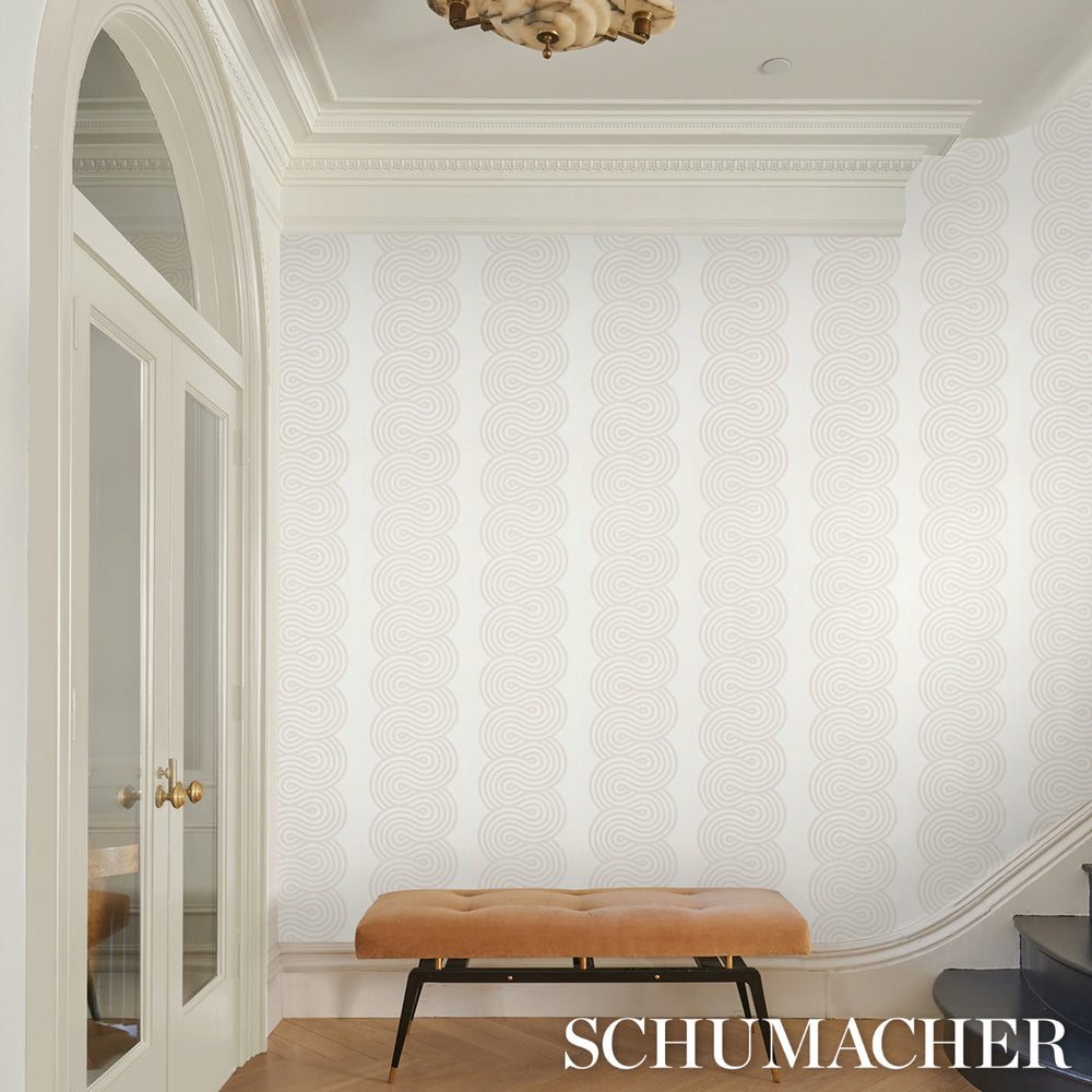 Giraldi in pumice is a ribbon-candy-esque stripe that combines a sense of movement with tactile dimension. Also available as a fabric. -