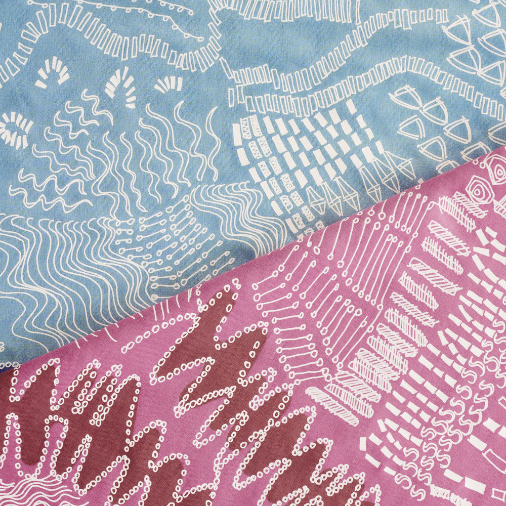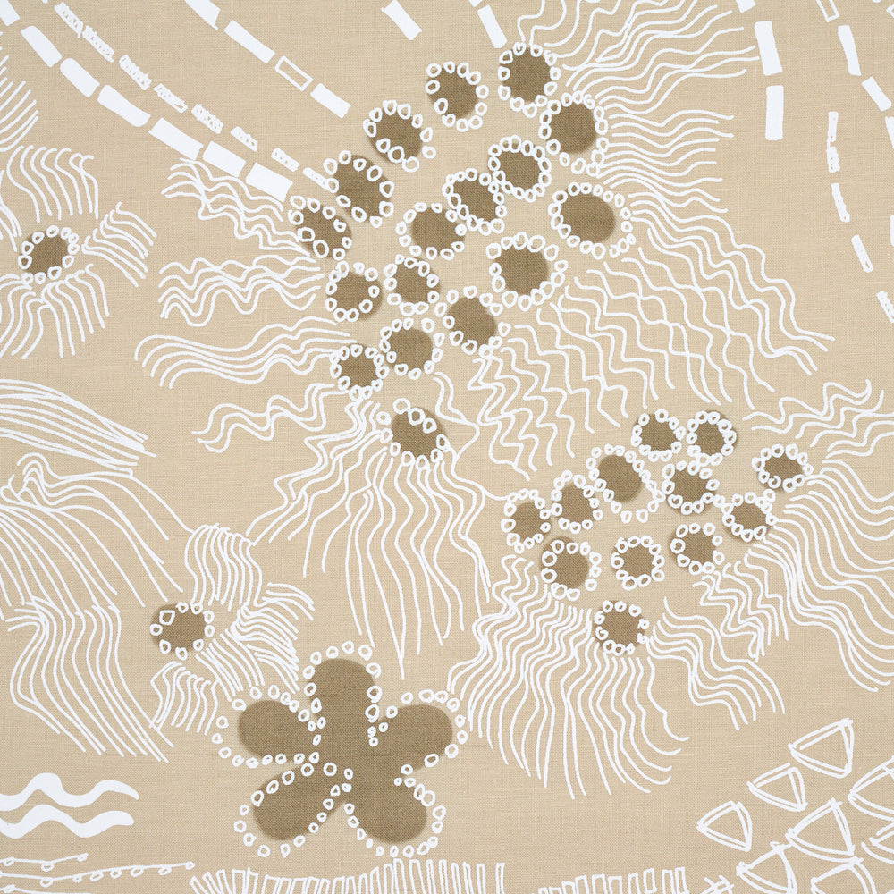 Evoking ancient drawings, Haven in light neutral was designed by London-based fashion house Clements Ribeiro. Watery inks were used to create the flowing textures in this oversized, large-scale fabric that channels aboriginal art and hints at age-old ruins. Also available as a wallpaper. -