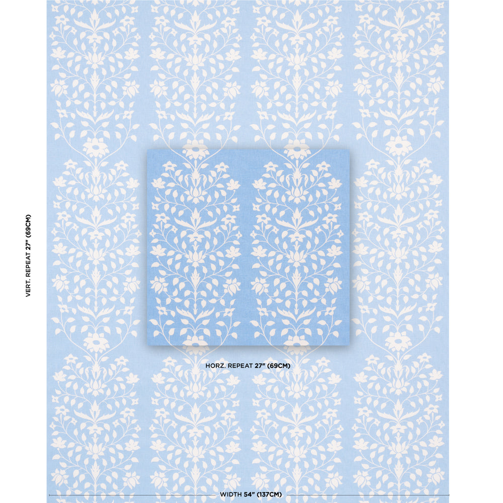 A wonderfully simple stylized floral with a large-scale stripe effect, Jaipur Mughal Flower fabric in cornflower blue was created by Marie-Anne Oudejans and inspired by her work as a decorative painter in Jaipur, India. Rotary printed on soft 100% linen, it has a lovely hand and is perfectly suited for furniture, pillows and window treatments. Also available as a wallpaper. -
