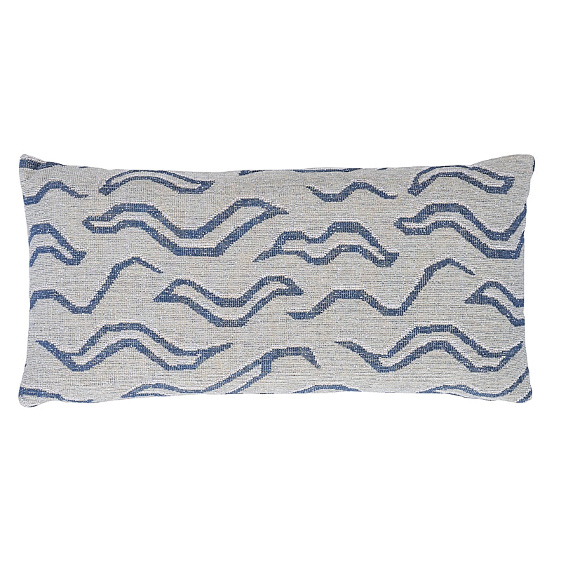This pillow features Kata with a knife edge finish. An abstract take on a Tibetan tiger pattern, denim-colored Kata is a fabulous, upholstery weight, flat weave fabric with a little chenille for a soft touch. It is a mid-scale, allover pattern with subtle tonal variations that create an antiqued look. Pillow includes a feather/down fill insert and hidden zipper closure. -