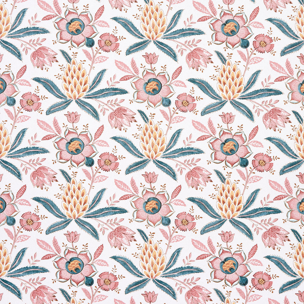 Inspired by a late 18th-century French chintz, Lafayette Botanical in rosso antico features an exuberant flower and pineapple pattern reflecting the European and American affinity for the exotic delights discovered along Asian trade routes. A mid-scale allover design, this marvelous wallpaper adds a gorgeous floral element to any room. Also available as a fabric. © 2022 The Colonial Williamsburg Foundation. WILLIAMSBURG is a trademark of The Colonial Williamsburg Foundation. -