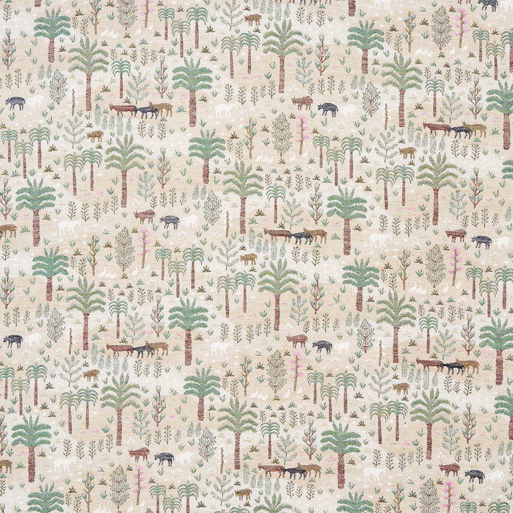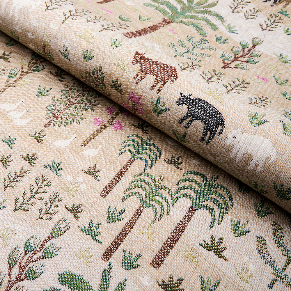 Inspired by handwoven textiles from South and Central America, Las Colinas in natural is a charming pastoral design that was painted in our studio and translated into a gorgeous upholstery-weight fabric. Space-dyed yarns give this small-scale folksy landscape pattern a super-soft hand and wonderful dimension. Also available as a wallpaper. -