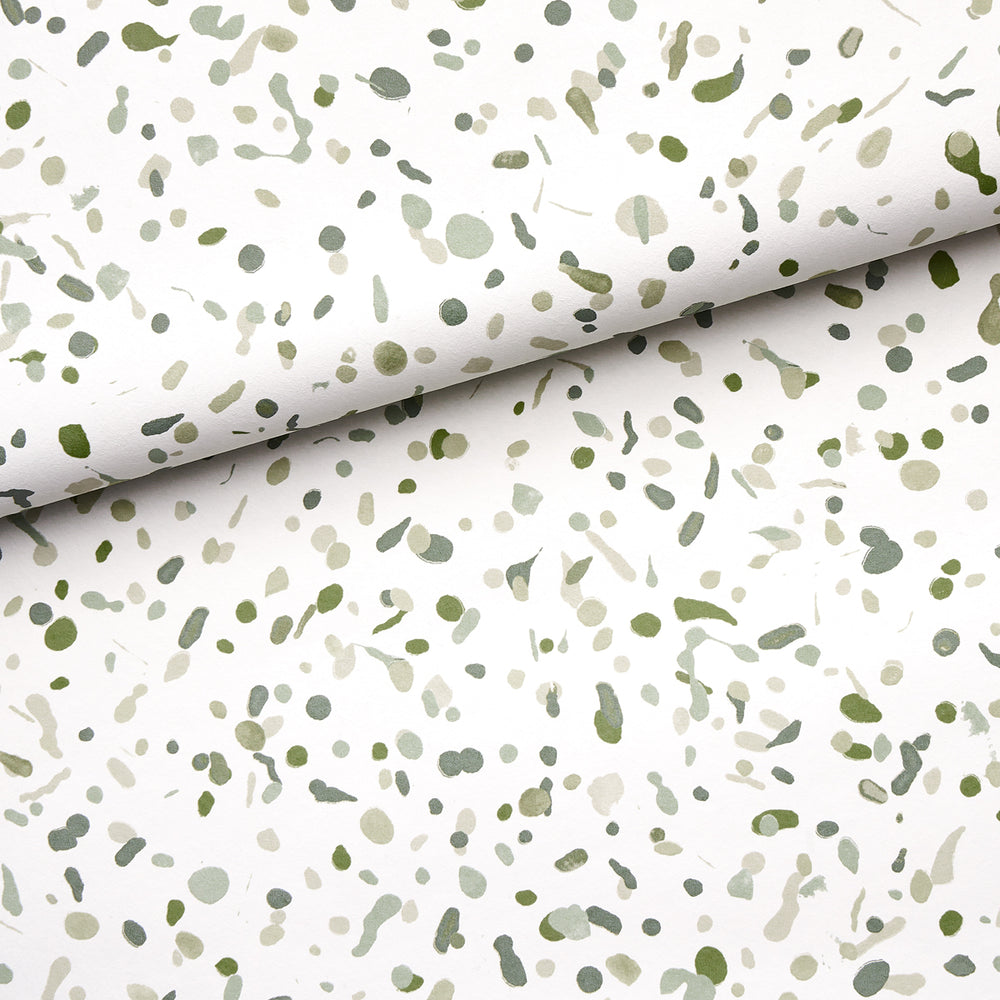 With its random multidirectional paint splatters, Los Cosmos in moss is a dynamic allover pattern with wonderful movement and dimension. Use this rhythmic small-scale wallpaper to line bookshelves, enliven a ceiling, accentuate a single focal wall or wrap an entire room. Pairs with Backdrop paint colors Moonstone, Road to Todos Santos and Weekend Upstate.