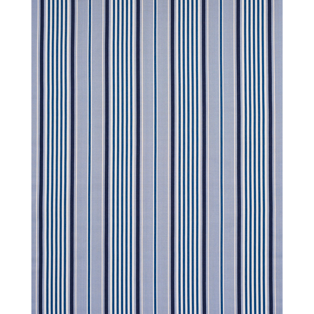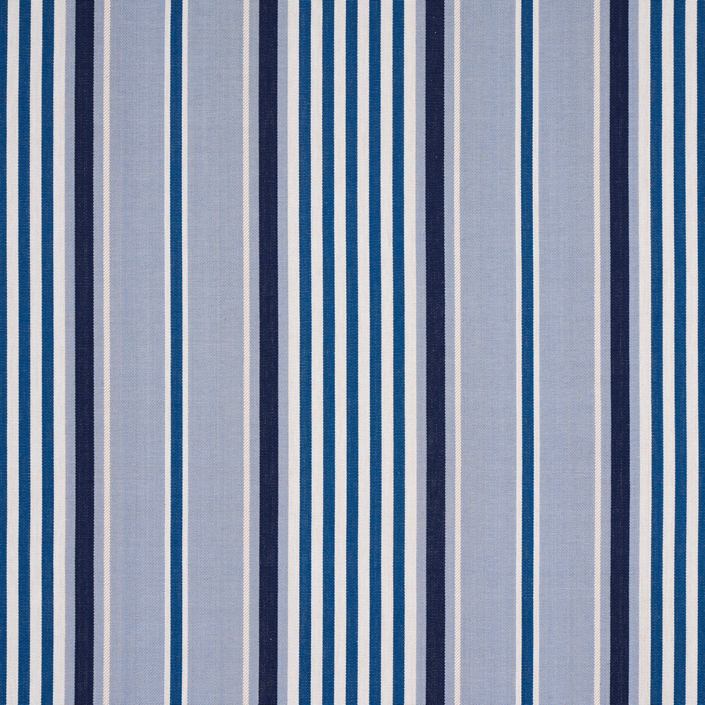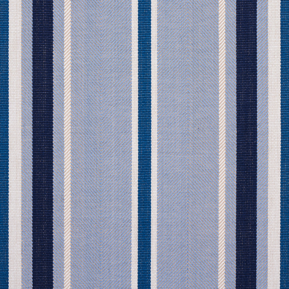 Not your ordinary ticking stripe, Minzer Cotton Stripe in blue improves upon a classic. This large-scale fabric gets some serious character from a weave with lots of texture and stripes of varying widths. Its substantial weight makes this fabric perfect for upholstery. -