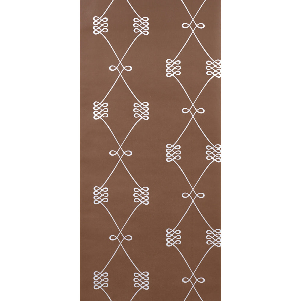 A swirling interpretation of a classic trellis motif in silver-on-brown, Nicolette's stylized pattern boasts a nice scale and sophisticated versatility for a wallcovering that works in a range of interiors.