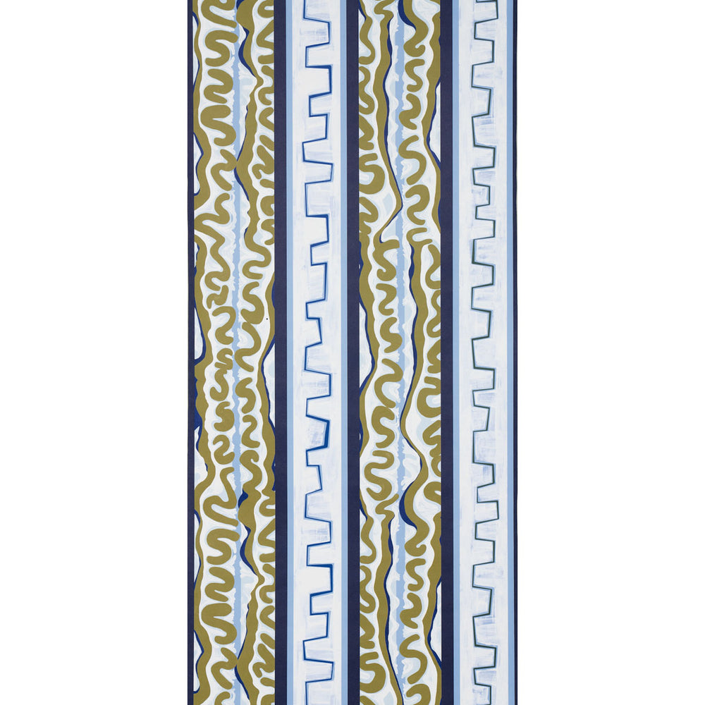 Based on original hand-painted artwork in gesso, acrylic and gouache, Night at the Opera in deep-blue-and-olive is a tour de force of decadent texture and pattern. This striking large-scale stripe is a fabulous maximalist wallpaper design that adds drama to any room. Pairs with Backdrop paint colors Cool Moon, West Coast Ghost and Formentera.