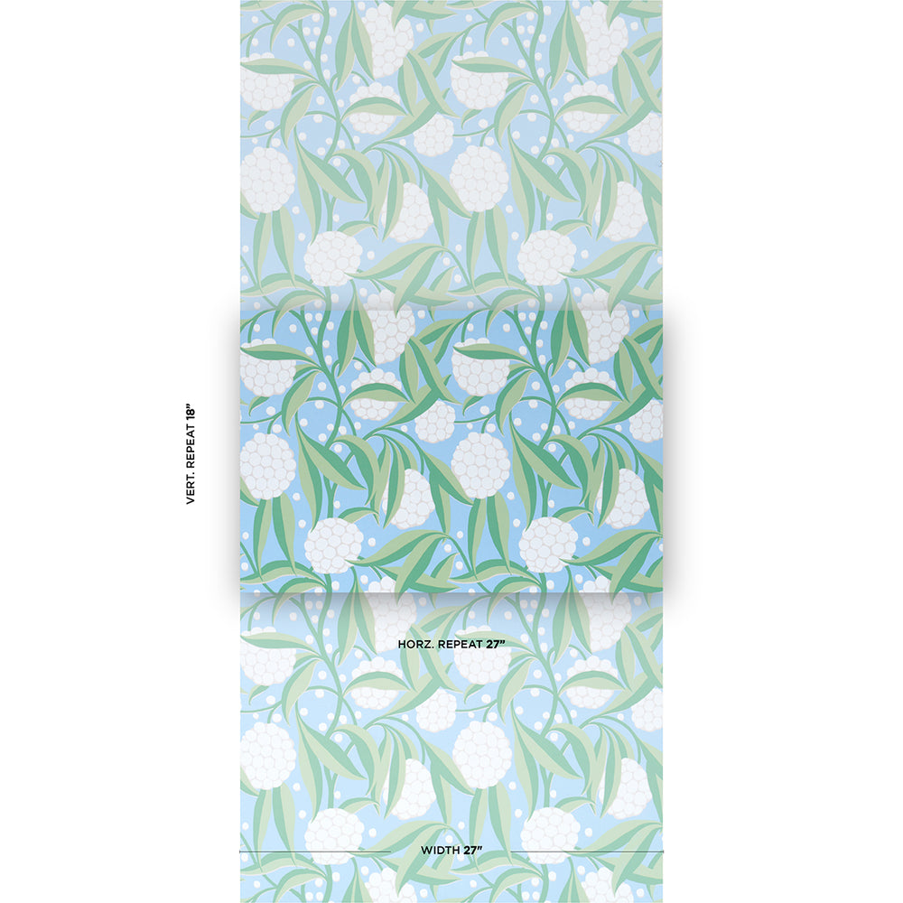 A painterly floral, Rubus in delft features stylized two-tone leaves and large graphic globes of flowers that will gracefully dance across walls. Also available as a fabric. -