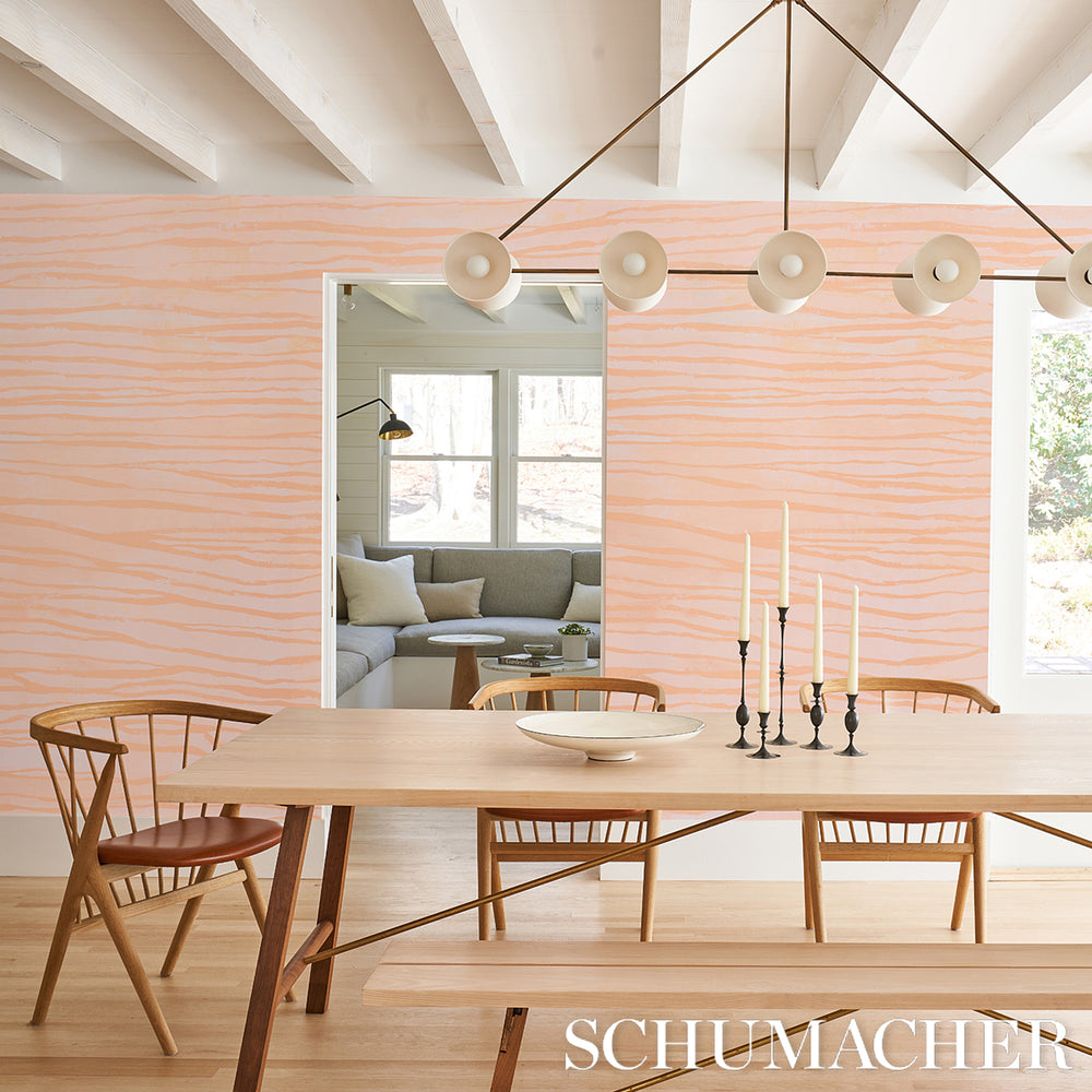 Based on art by Abel Macias, Terra Panel Set in canyon is a unique two-panel wallpaper design inspired by desert rock formations. This large-scale pattern features an irregular stripe effect, intriguing tonal variations and visible brushstrokes. It's printed on a smooth, flat ground and has a striking hand-painted look. Use it to wrap an entire room or on a single focal wall to create drama and atmosphere.