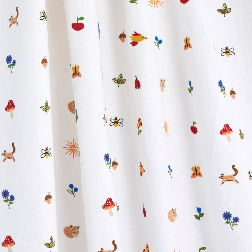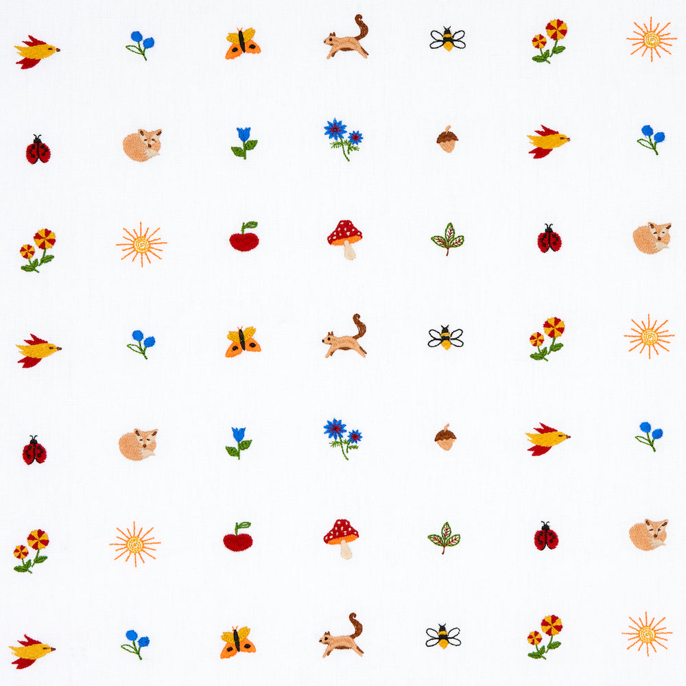 An airy small-scale pattern, multi-colored Tiny Things Embroidery is animated by a charming menagerie of woodland creatures, plants and insects. Featuring 15 motifs stitched on a cotton-linen ground fabric, this diminutive design is perfectly suited for window treatments, light upholstery, pillows or bedding. -