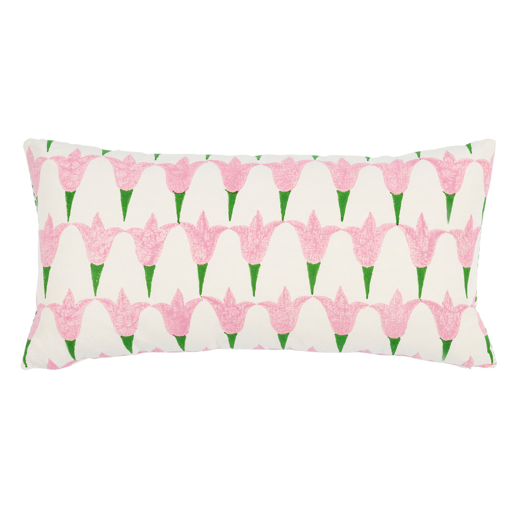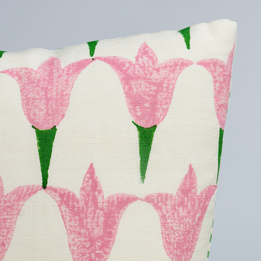 This pillow features Tulip on front with Seed on back, both by Molly Mahon for Schumacher with a knife edge finish. In Tulip, simple floral motifs are almost personified, reaching outward and bursting with cheerful color. A small-scale cotton fabric denoting hope and new beginnings, Seed is simple and effervescent. Pillow includes a feather/down fill insert and hidden zipper closure. -