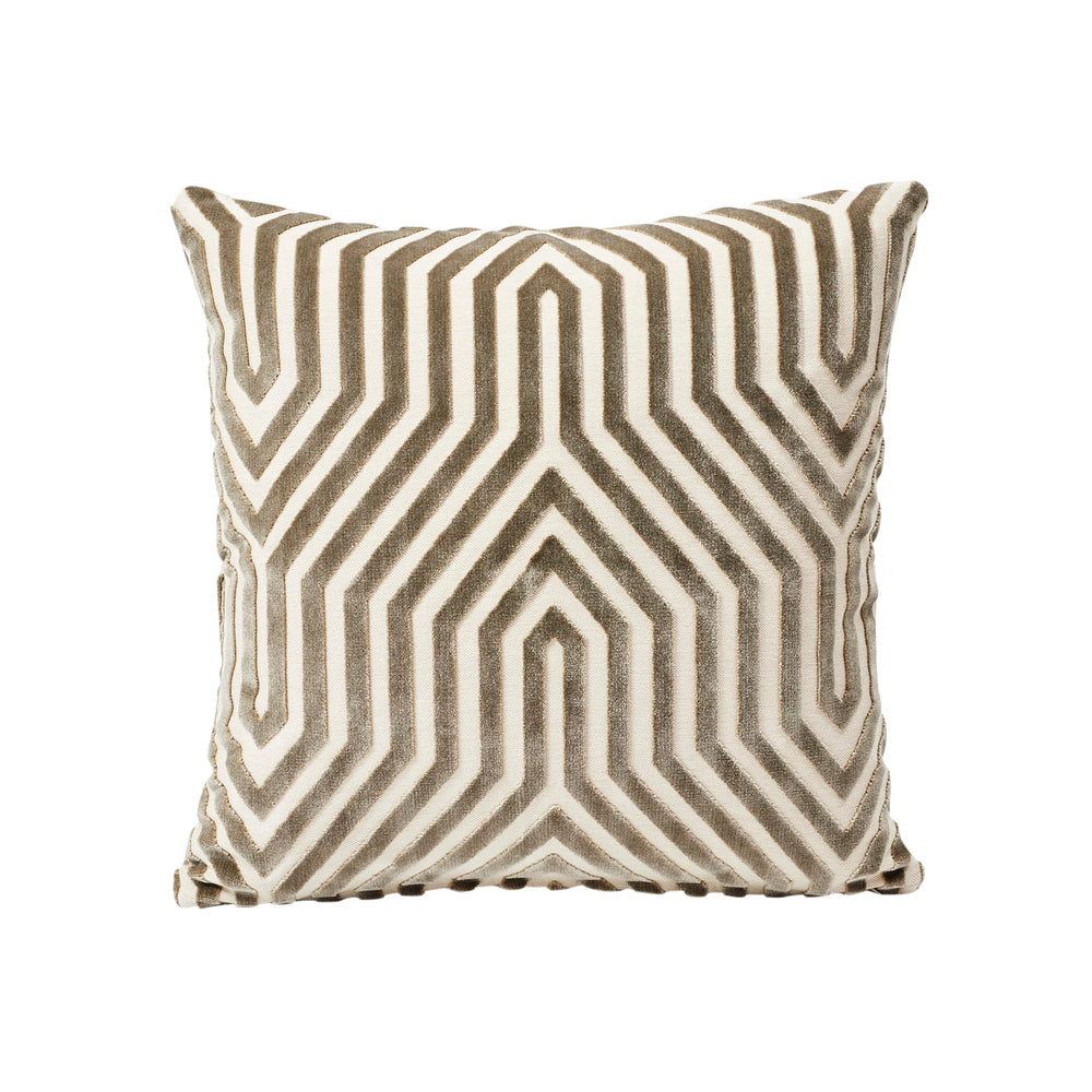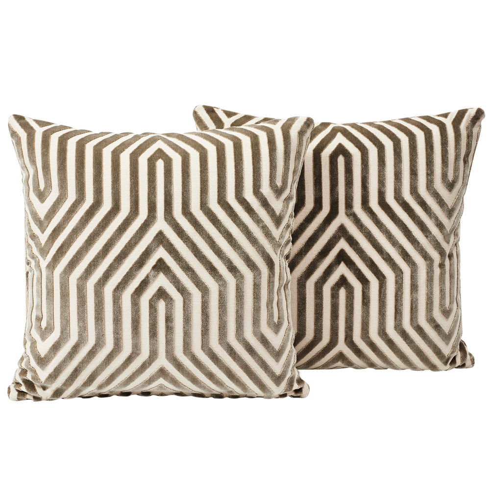 This pillow features Vanderbilt Velvet by Mary McDonald for Schumacher with a Knife Edge finish. A large-scale, linear design gives this Italian cut velvet fabric a graphic sensibility. The silk-like pile adds extra dimension and a luxurious hand to this upholstery woven. Pillow includes a feather/down fill insert and hidden zipper closure. -
