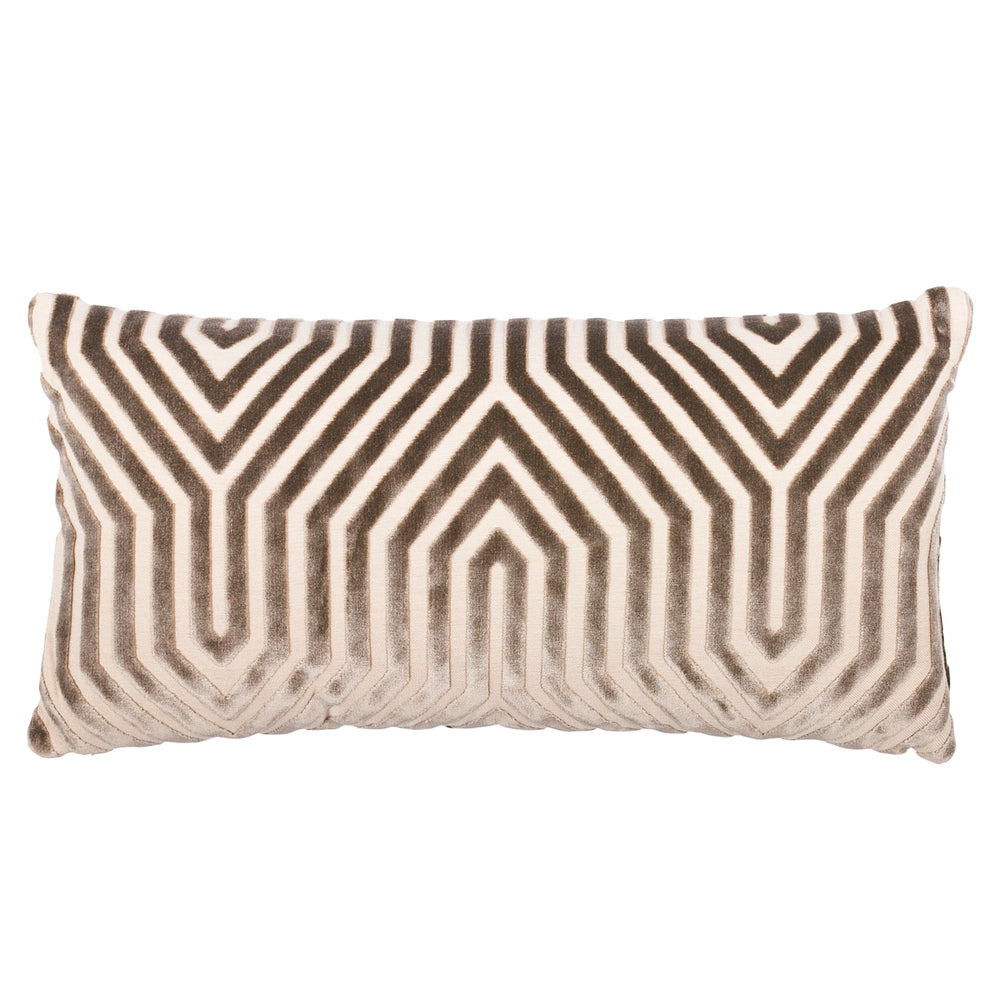 This pillow features Vanderbilt Velvet by Mary McDonald for Schumacher with a knife edge finish. A large-scale, linear design gives this Italian cut velvet fabric a graphic sensibility. The silk-like pile adds extra dimension and a luxurious hand to this upholstery woven. Pillow includes a feather/down fill insert and hidden zip closure. -