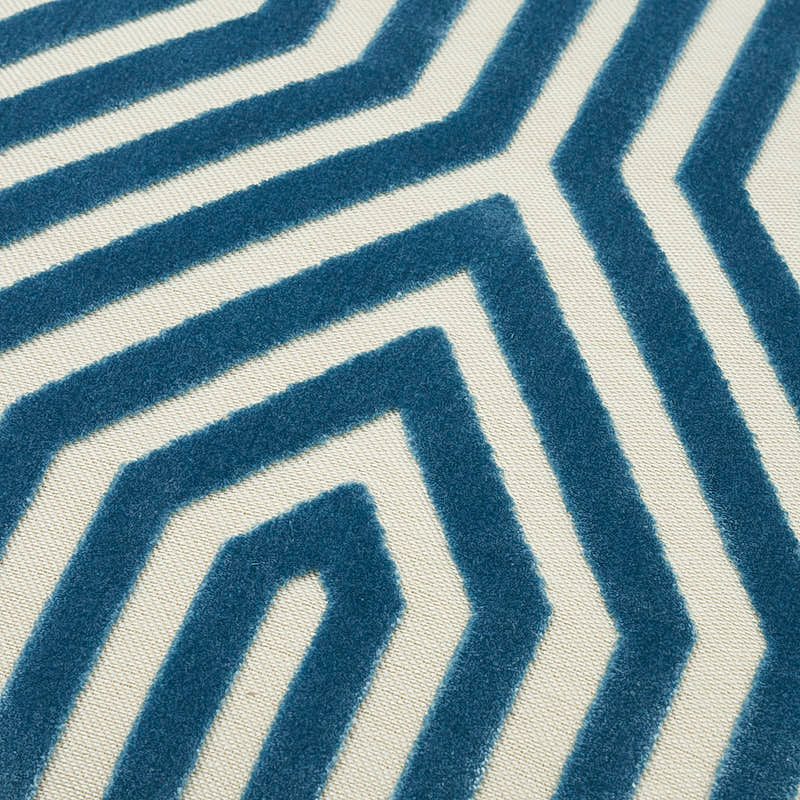 This pillow features Vanderbilt Velvet by Mary McDonald for Schumacher with a Knife Edge finish. A large-scale, linear design gives this Italian cut velvet fabric a graphic sensibility. The silk-like pile adds extra dimension and a luxurious hand to this upholstery woven. Pillow includes a feather/down fill insert and hidden zipper closure. -