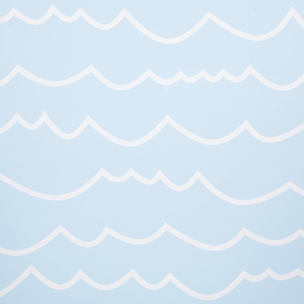 Reminiscent of a simple line drawing, Waves in white-on-sky is a pared-down horizontal stripe with a graphic, punchy charm. -