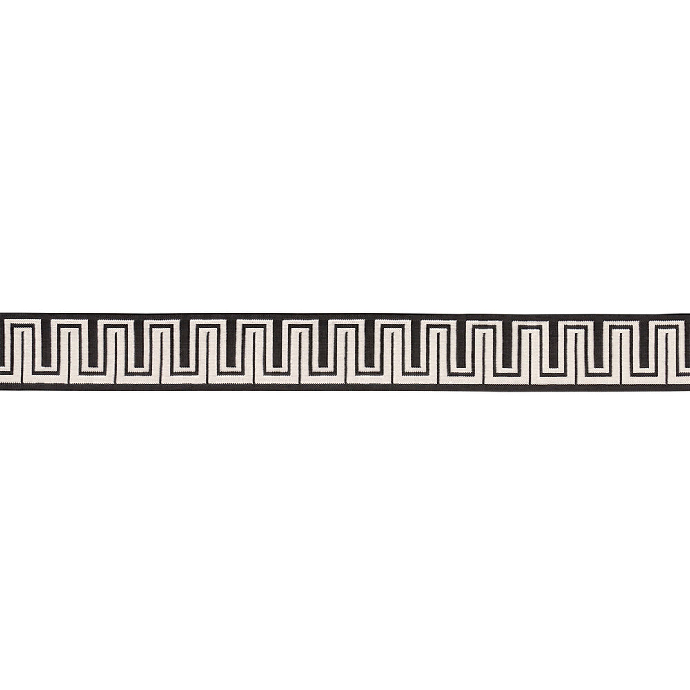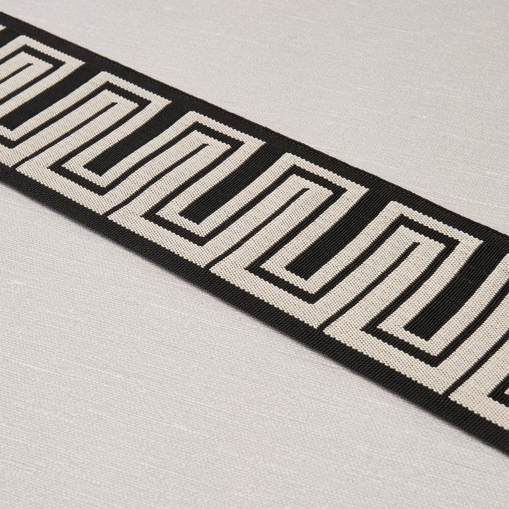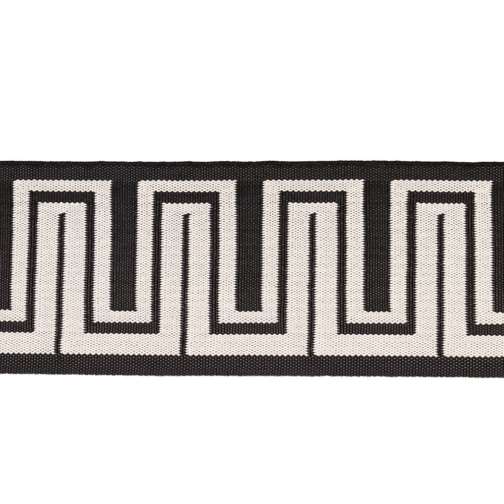 A fresh take on a familiar form, Zeus Indoor/Outdoor Tape in black is a modified Greek key design by Mary McDonald. The tight high-performance weave resists stains, moisture, mildew and fading. This stylish three-inch-wide trim is a chic finishing touch for upholstery, pillows or windows, indoors or out.