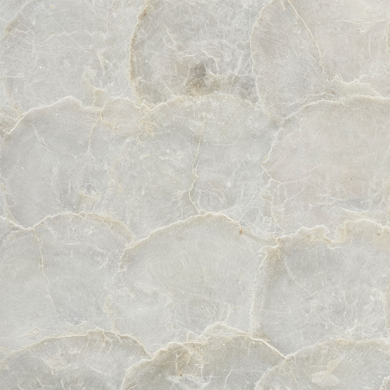 This delicate fish-scale pattern is made of genuine mother of pearl. It comes in 15.75 inch square tiles that can be oriented in different directions to create a gorgeous custom look. -