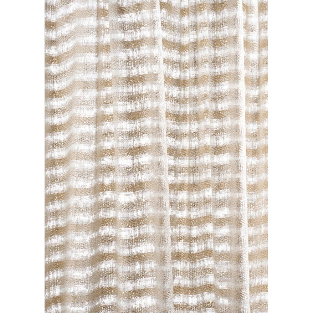 A perfectly simple, woven stripe, this cotton-linen sheer features textured, tonal horizontal bands with an elegant, subdued look. It is double-width and railroaded so that the pattern can be used in long swathes without seams. -