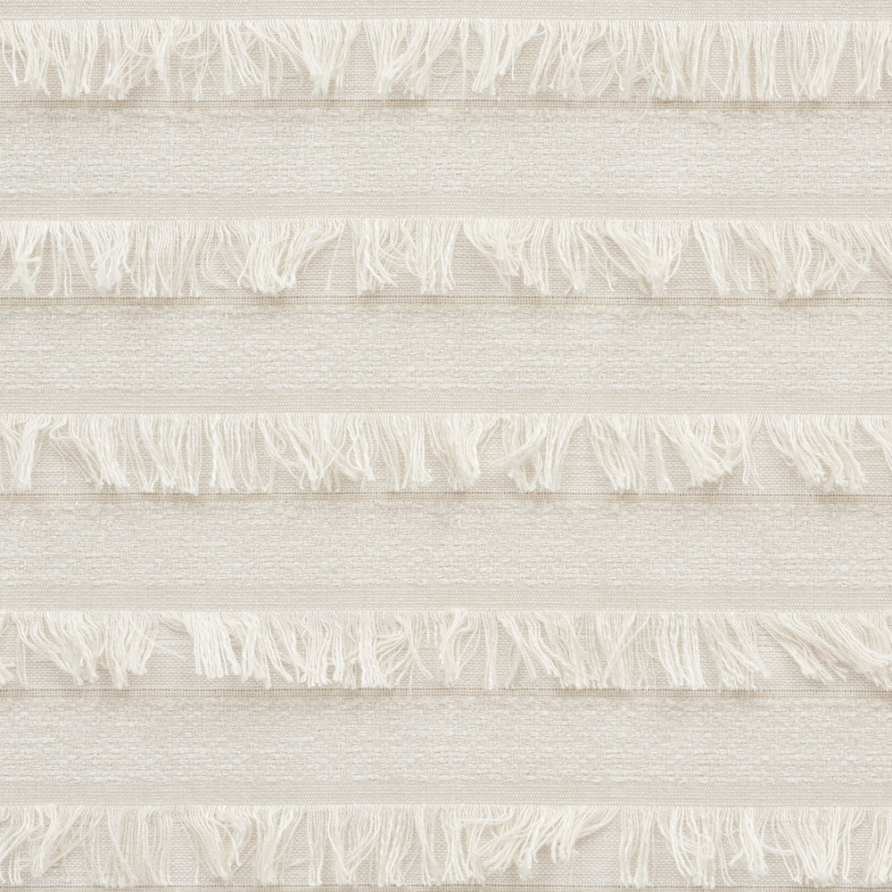 A horizontal fringed stripe, Acadia derives from a textile in our archives from the 1970s. Beautifully woven with silk mélange yarn, it has an artisanal look and multi-textural appeal. -