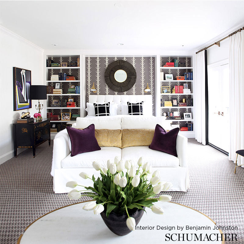 This pattern is a stylized stripe based on a classic acanthus motif. Elegant and airy, the design is printed on a sisal ground, giving it subtlety and dimension.
