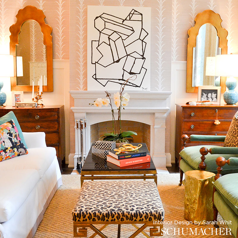 This pattern is a stylized stripe based on a classic acanthus motif. Elegant and airy, the design is printed on a sisal ground, giving it subtlety and dimension.