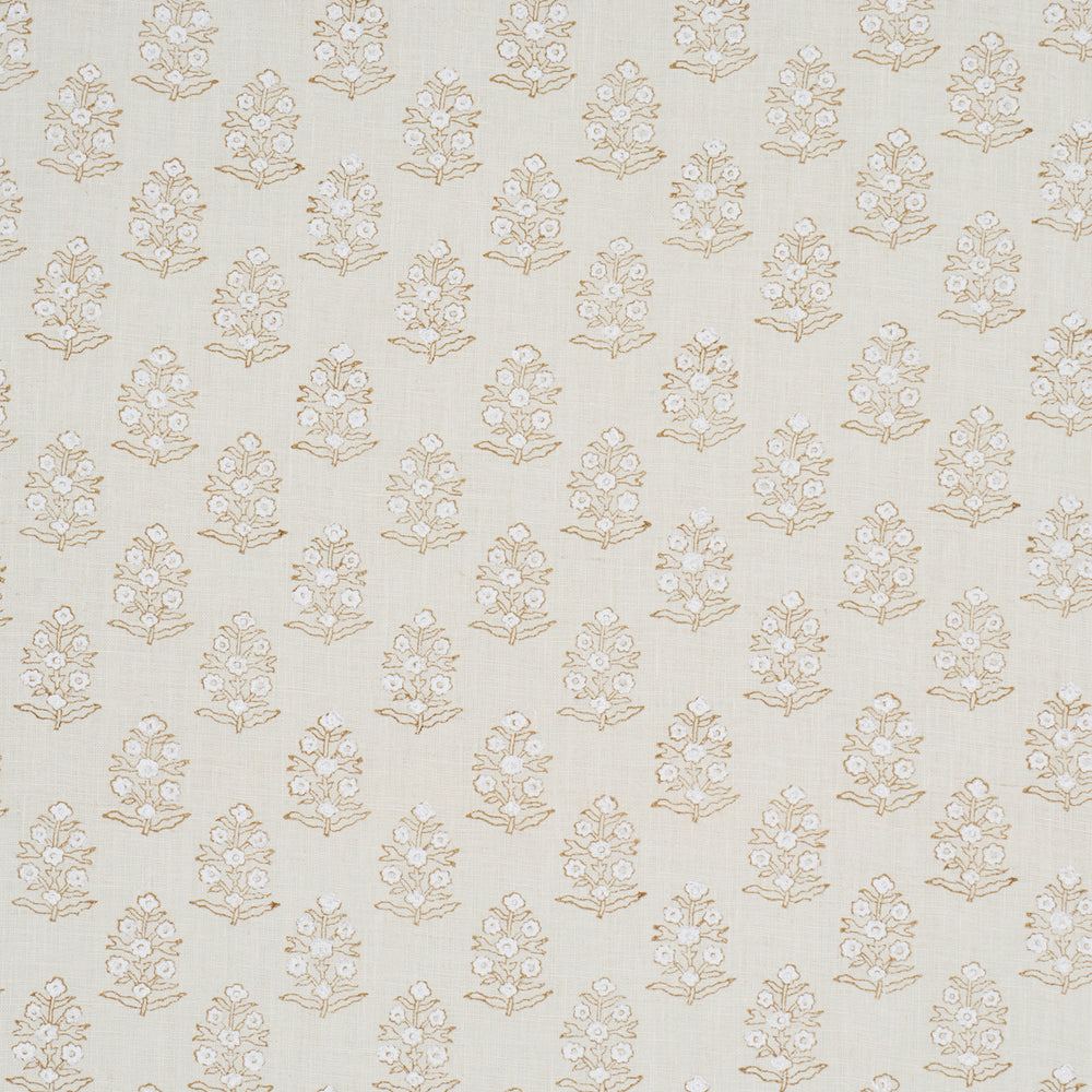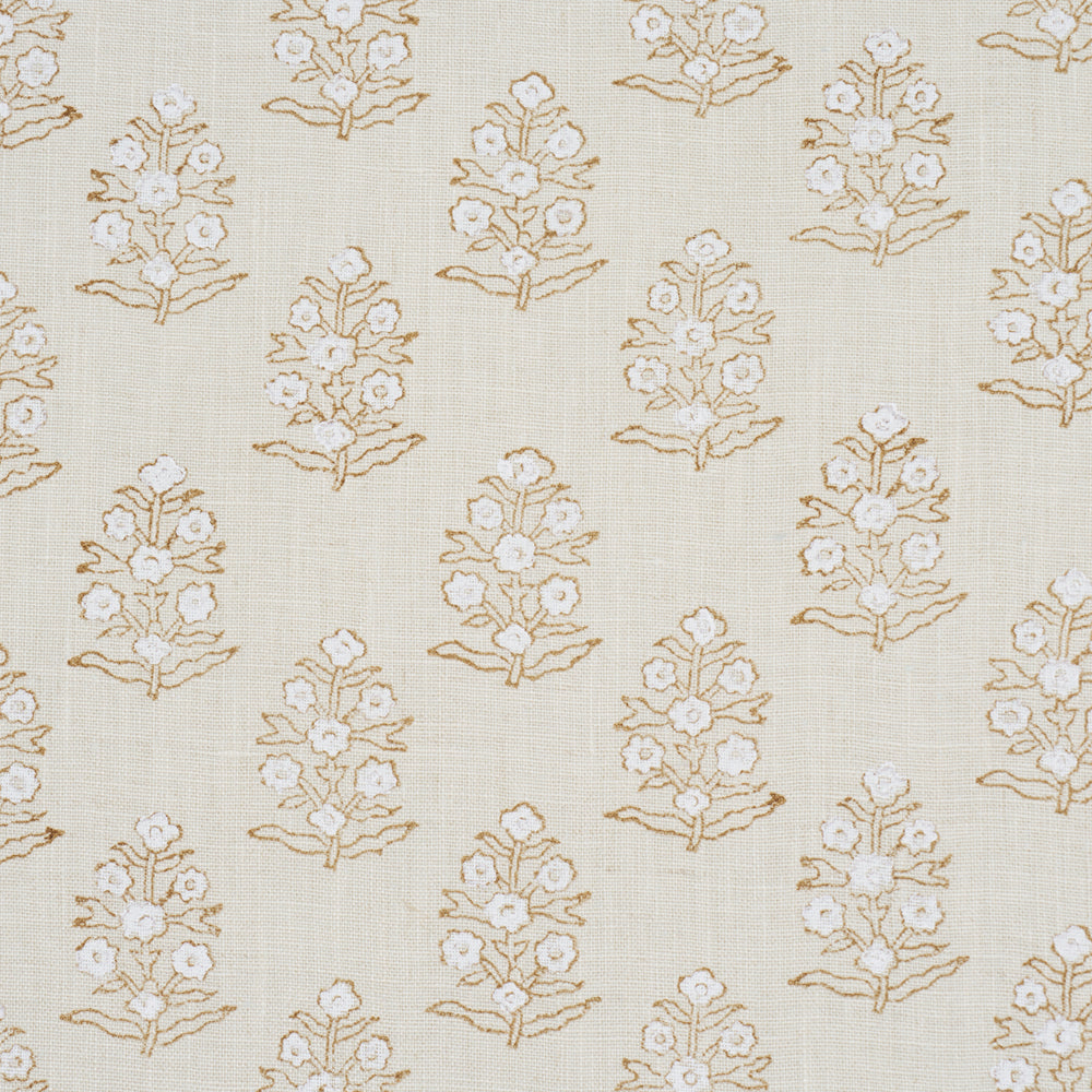 Petite bunches of stylized flowers are meticulously block printed by hand on a soft linen ground, giving each bouquet subtle variations and an artisanal touch. -