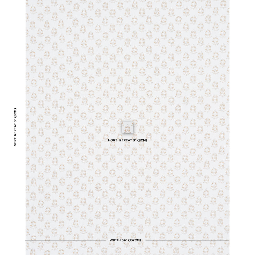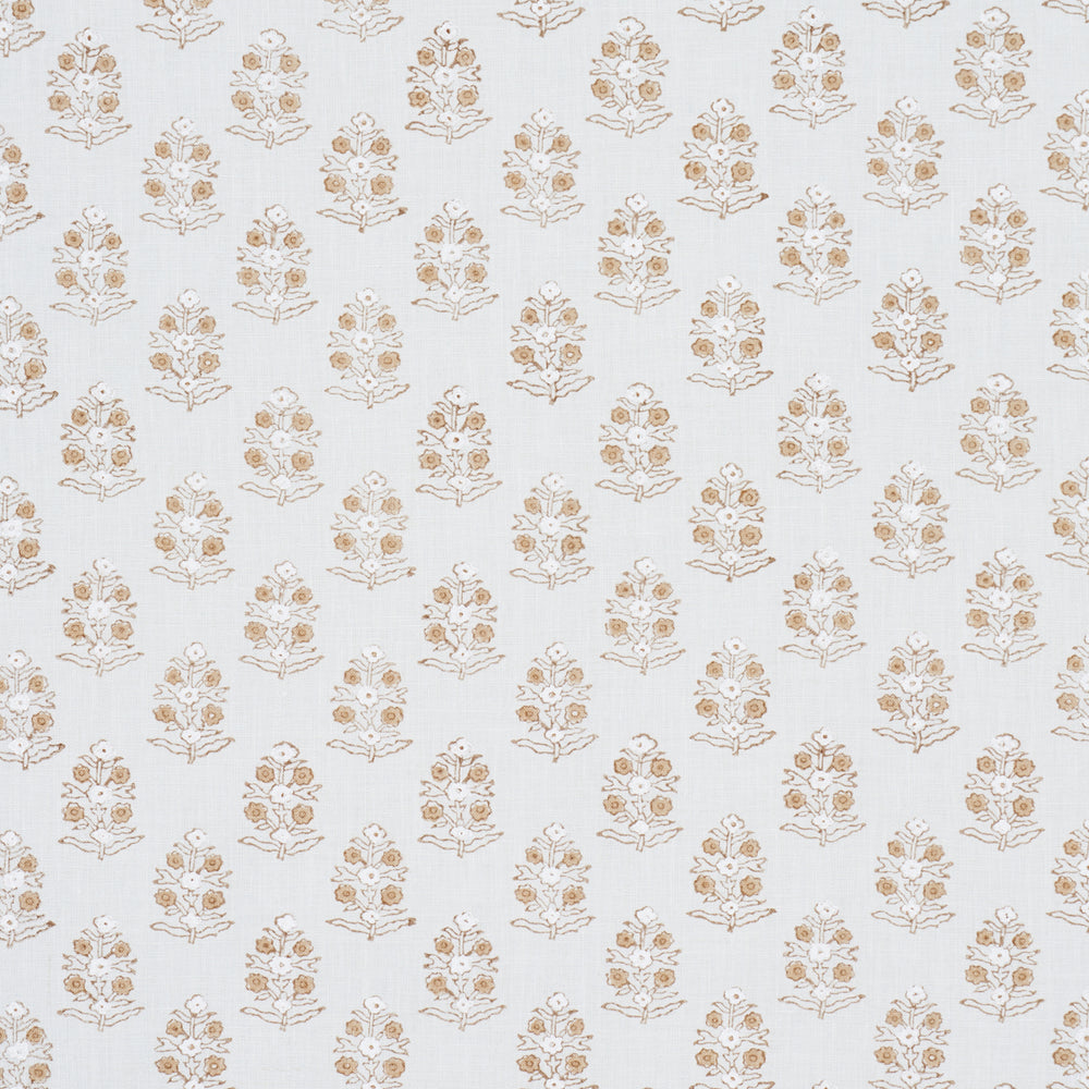 Petite bunches of stylized flowers are meticulously block printed by hand on a soft linen ground, giving each bouquet subtle variations and an artisanal touch. -
