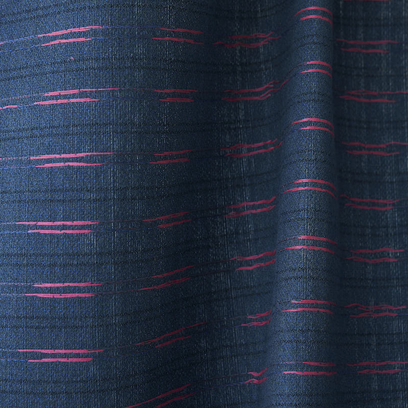 This high-performance woven ikat stripe with a soft, supple hand has a mélange ground and the handmade feel of an antique textile. It is railroaded so that the pattern can be used in long swathes without seams. -