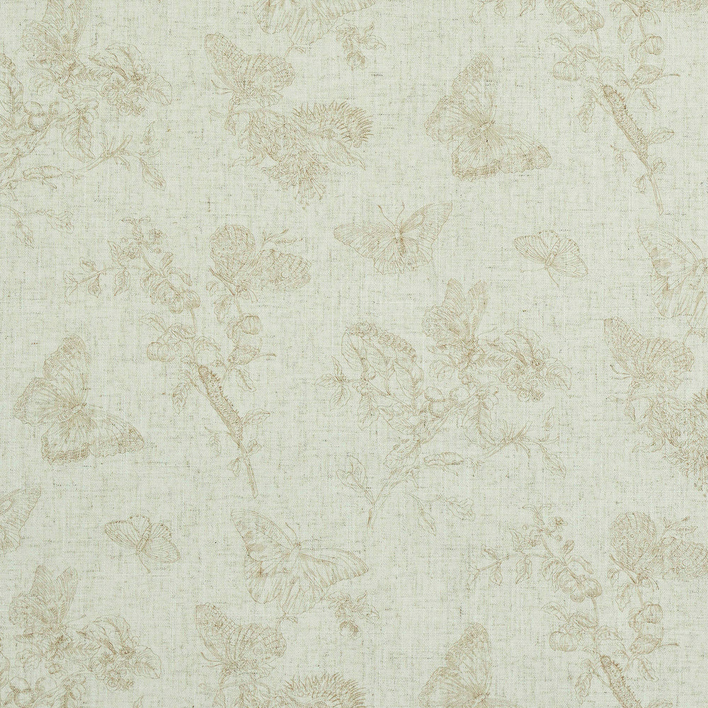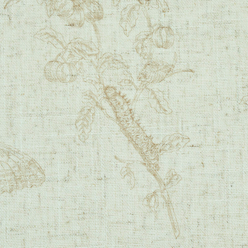 A print based on the colorful scientific illustrations of 17th-century German naturalist Maria Sibylla Merian takes on a quiet sophistication rendered in black outline on a natural linen ground. -