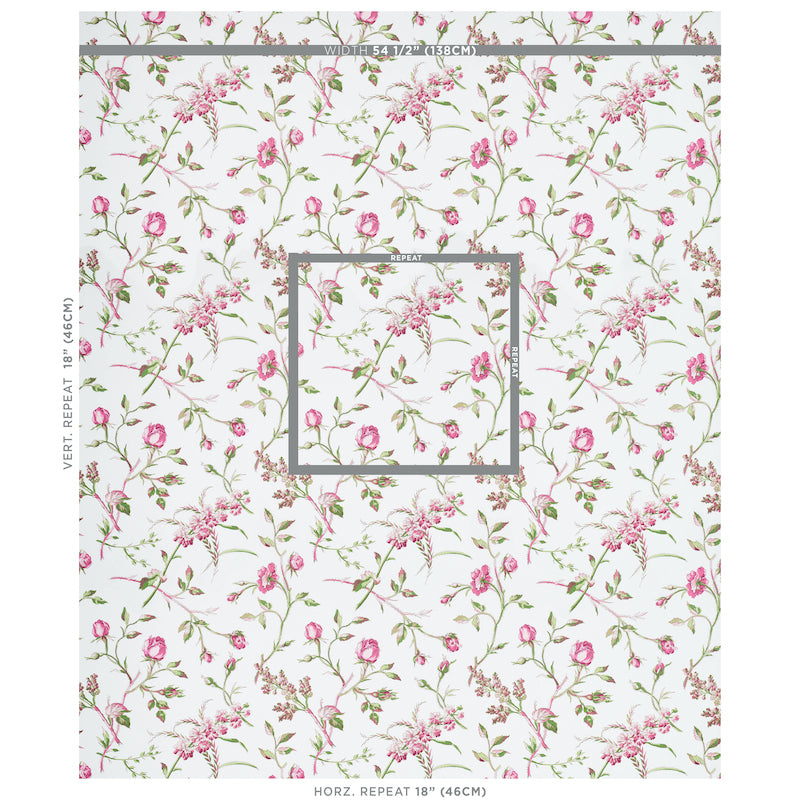 A scattered toss of roses that looks as as if it was just gathered from an English garden, this truly unique floral is unlike any other in the Schumacher archive. Originating from the late 19th century, the multidirectional design is distinctly easy to us -