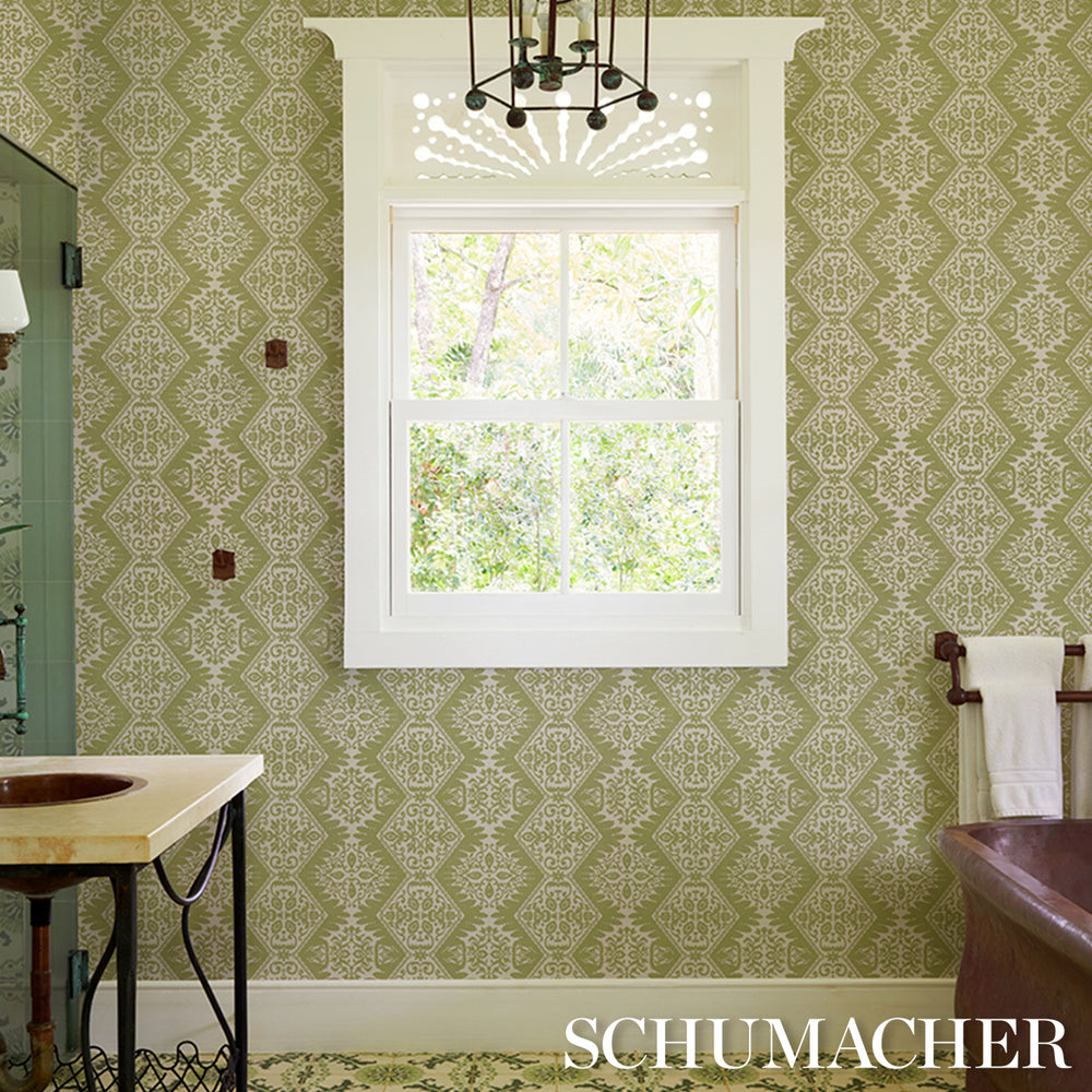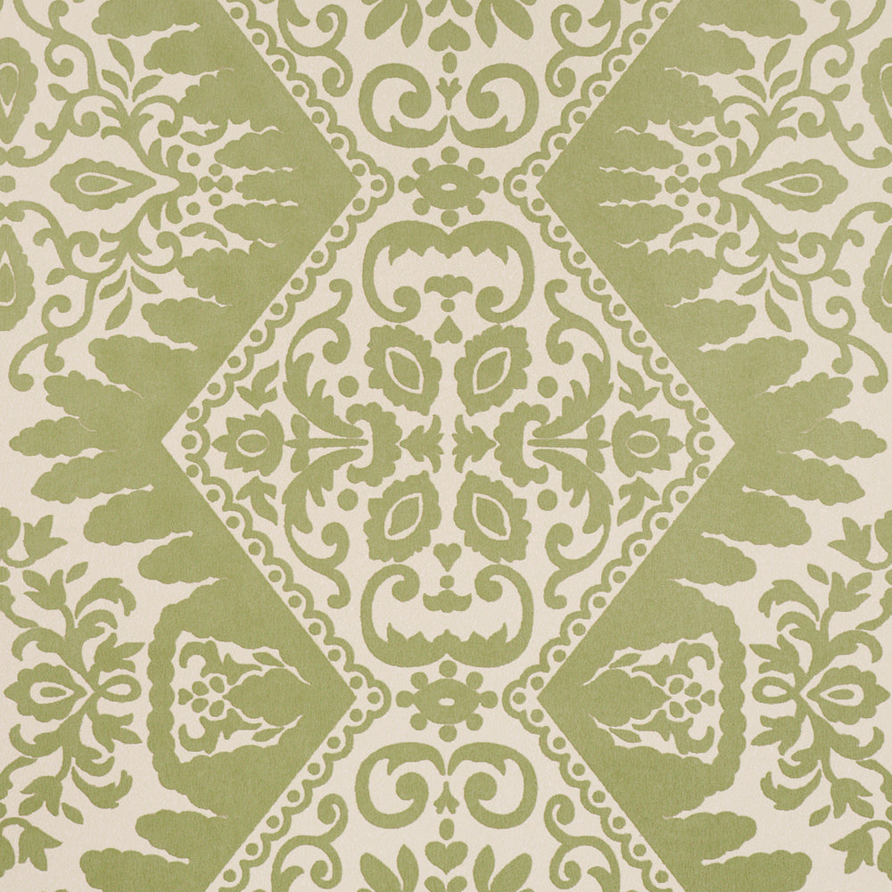 Inspired by a magnificent silk velvet suit in the Colonial Williamsburg Foundation archive, Berkeley is a modern adaptation of an 18th-century geometric floral. Featuring unique patterning and a subtle mottled texture, this handsome medium-scale wallpaper design has a wonderful fresco-like quality. Also available as a fabric. -