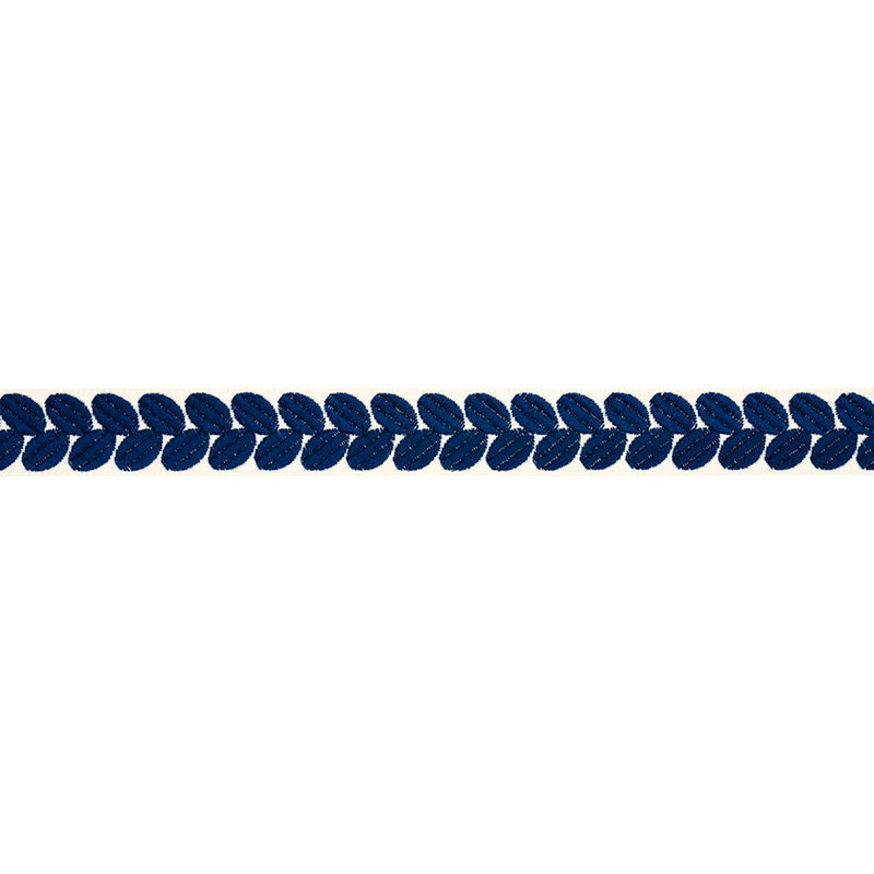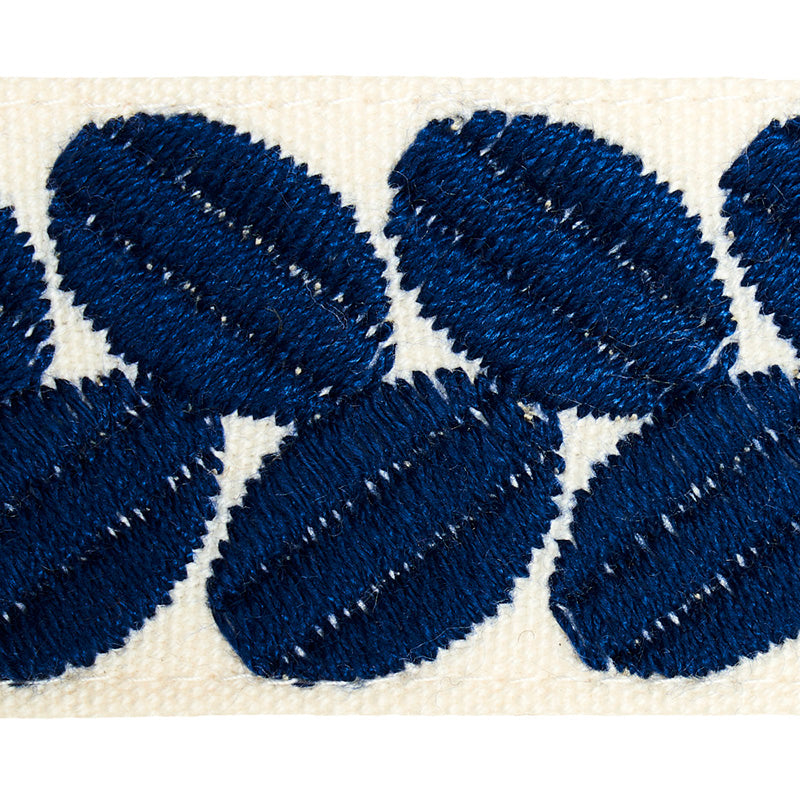 An exuberant embroidered tape with a leaf-like pattern rendered in satin stitching; inspired by a document in our archives. Available in multiple colors and widths -