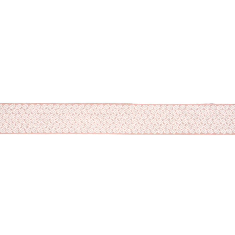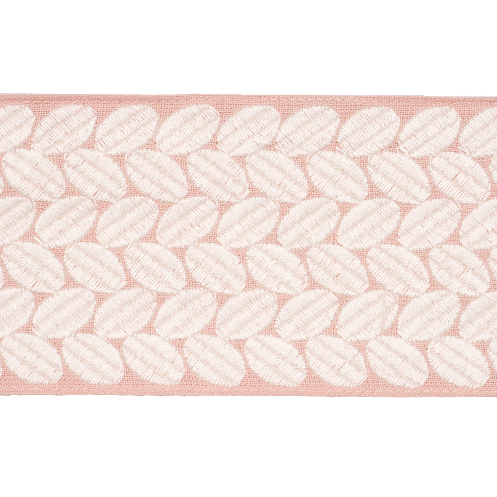 An exuberant embroidered tape with a leaf-like pattern rendered in satin stitching; inspired by a document in our archives.