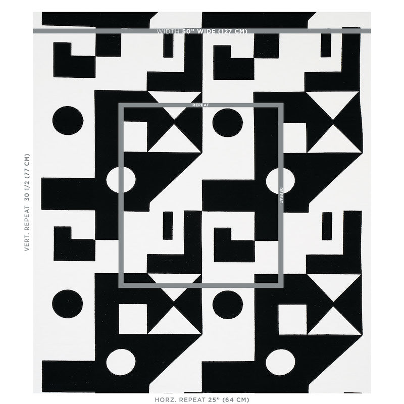A stylish study of geometric shapes, this graphic, black-and-white pattern by Porter Teleo is densely embroidered on a textured cotton ground. Also a wallpaper. -