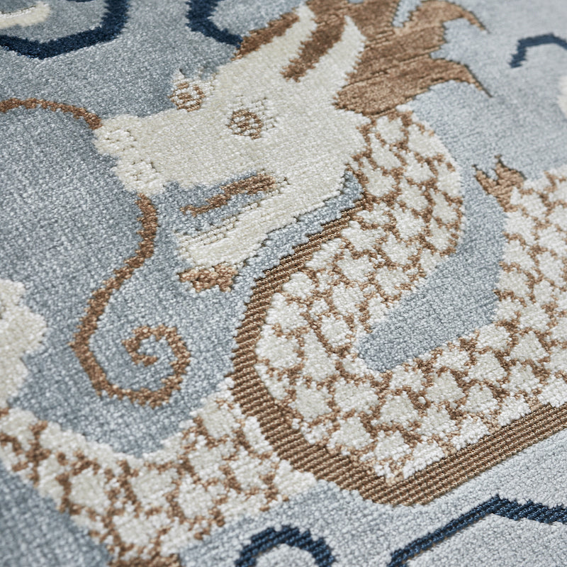 This pillow features Bixi Velvet with a Self-Welt finish. Inspired by chinoiserie motifs, this fabulous, fantastical dragon pattern was dreamt up by our in-house design studio. Dense pile and loop accents create a rich, textural allure. Pillow includes a feather/down fill insert and hidden zipper closure. -