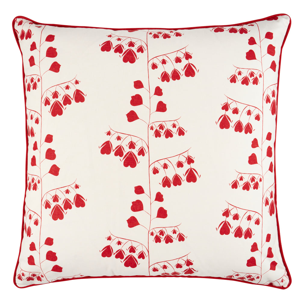 This pillow features Bleeding Hearts by Peg Norriss for Schumacher. Bleeding Hearts derives its delicate floral motif from a painting by artist Clare Rojas. Clean and contemporary, graphic and fresh, this stylized print is a versatile medium-scale design that is equally at home in traditional and modern interiors. Pillow is finished with a welt in Elliott Brushed Cotton. Welt contents: 100% cotton. Pillow includes a feather/down fill insert and hidden zipper closure. -