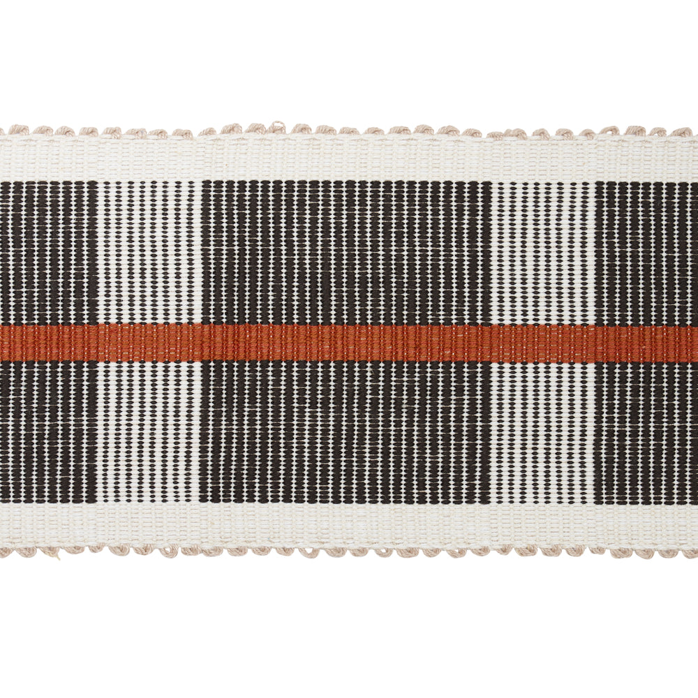 Simple yet sophisticated, Calcada Tape in rust is a versatile, rhythmic, chunky woven geometric stripe stripe that adds style and texture to furniture, window treatments or pillows. Available in 2 ½” and 4 ½” widths.