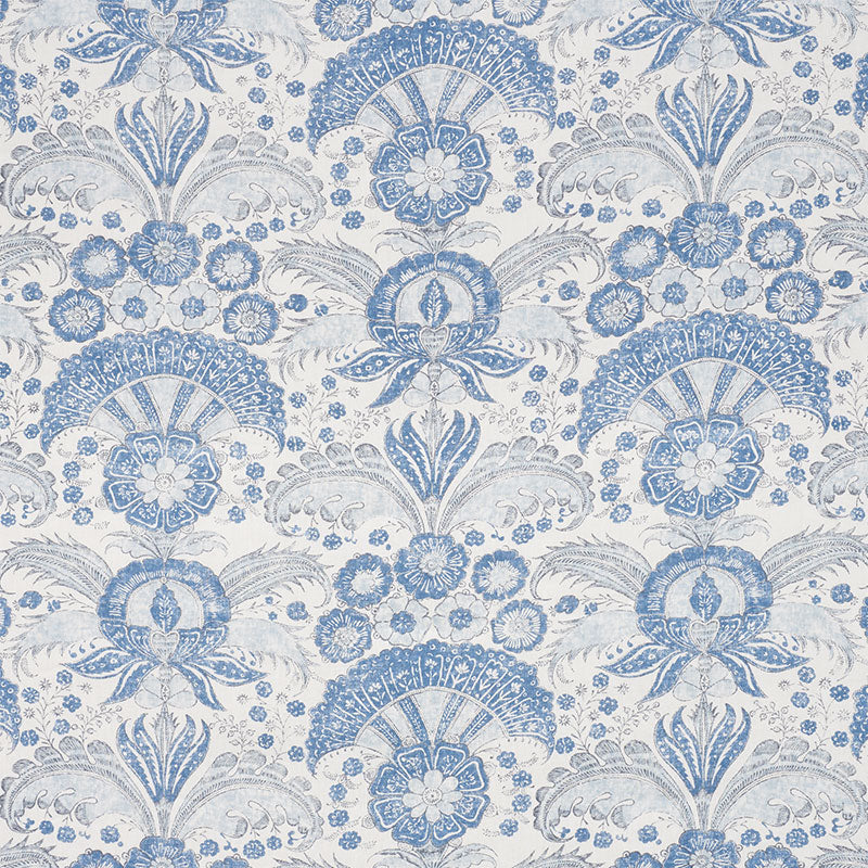 A fanciful floral derived from traditional Indian motifs, Calicut has the delicate colorations and perfectly imperfect, mottled look of a handblock print. -
