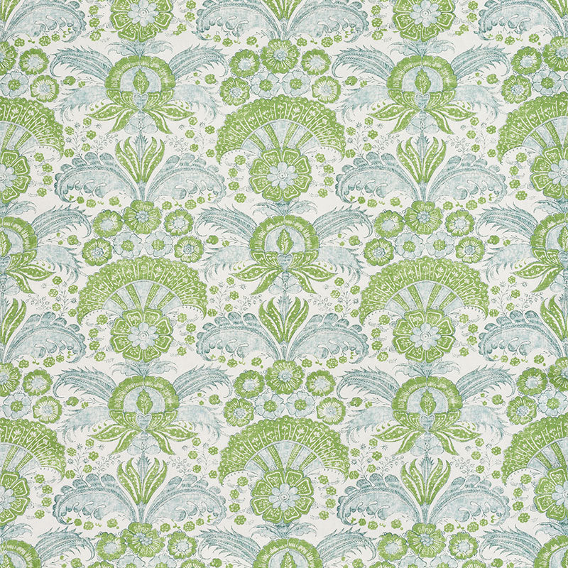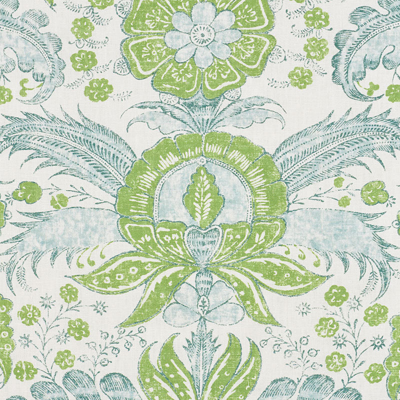 A fanciful floral derived from traditional Indian motifs, Calicut has the delicate colorations and perfectly imperfect, mottled look of a handblock print. -