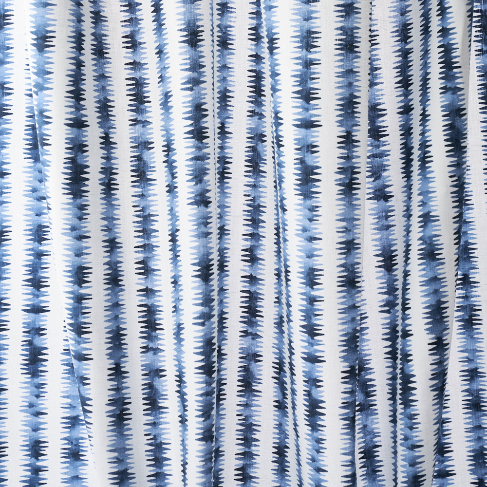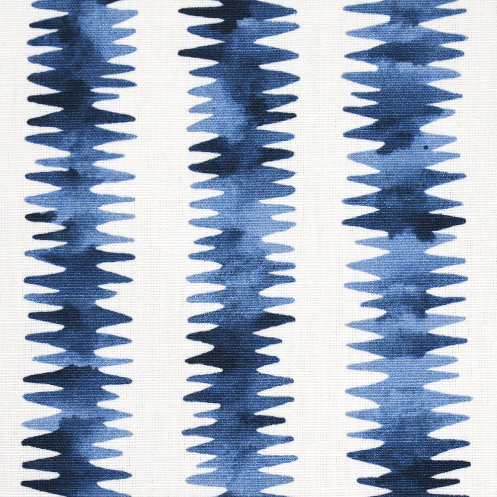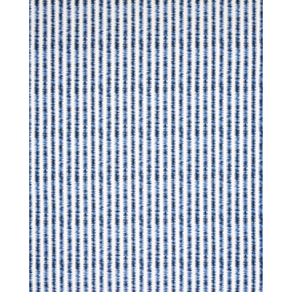 Happy Menocal’s Cardiogram in blue is an imaginative small-scale stripe with electric energy. A creative take on a classic pattern, this versatile fabric is a lively print for furniture, pillows and window treatments. -